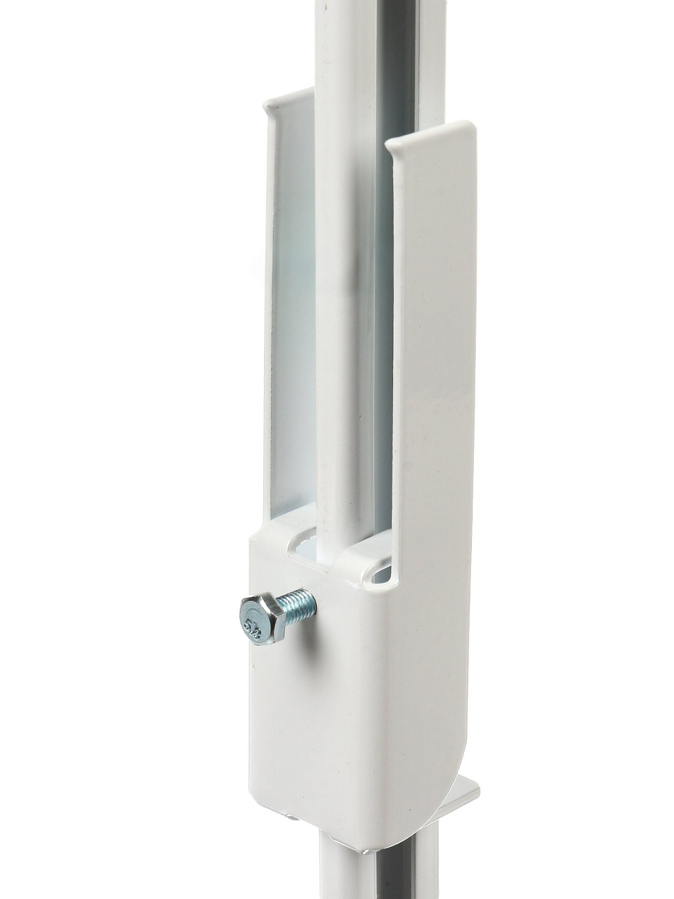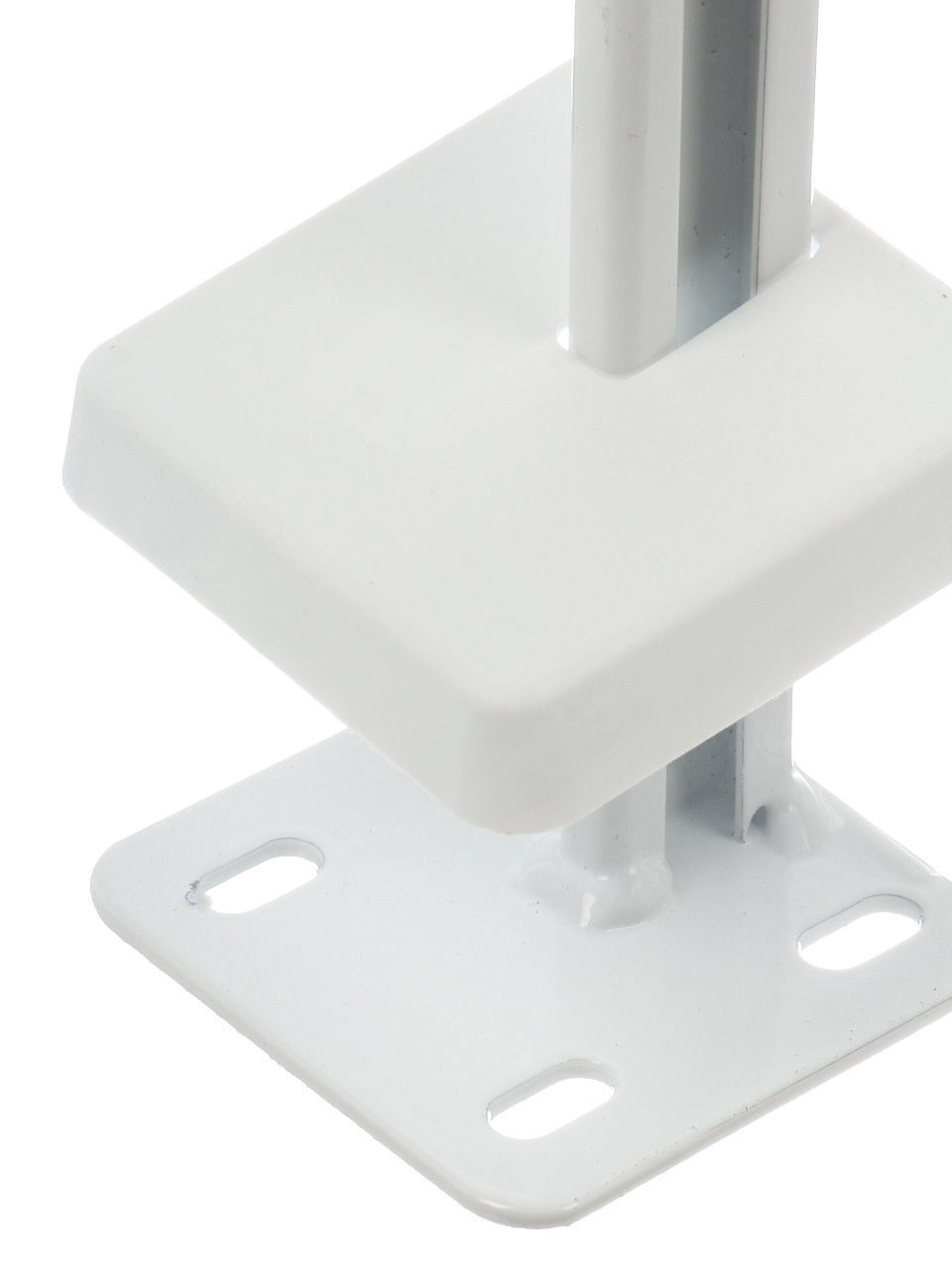 Напольный распорный кронштейн удобен для дачи и временных построек: не требует сверления стен, легко устанавливается и демонтируется, не портит покрытие пола.