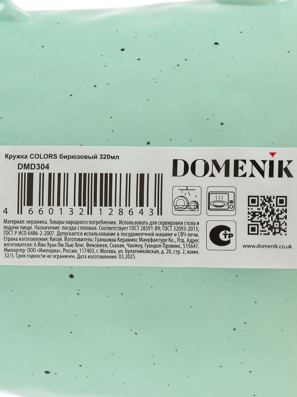 Керамическая кружка Colors Domenik 320 мл — стильный выбор для дома и подарка: бирюзовый цвет, подходит для СВЧ и посудомоечной машины, универсальный дизайн.
