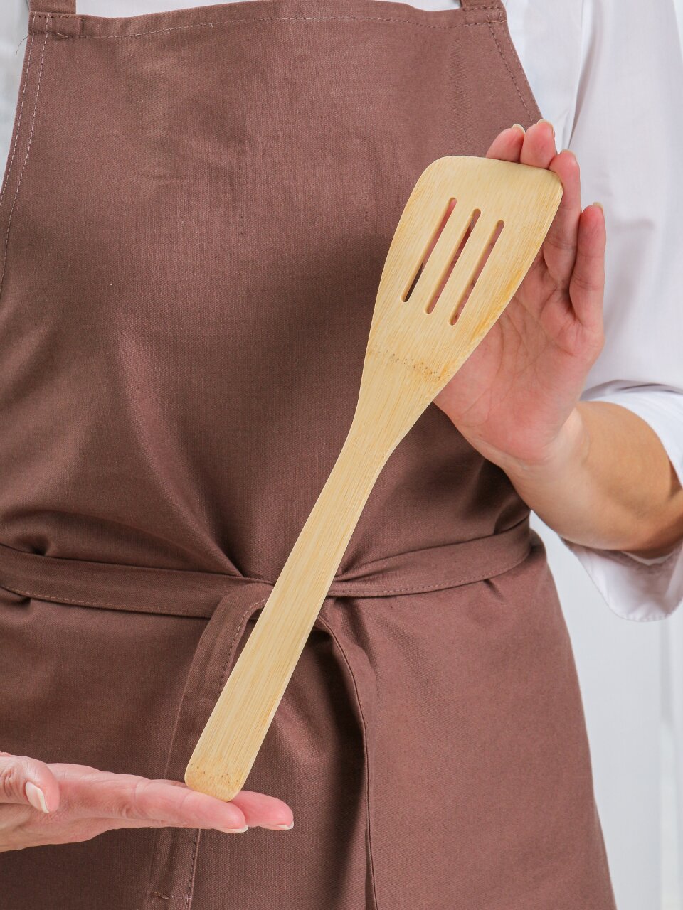 Ложка с прорезями выполнена из высококачественной древесины бамбука. Она предназначена для перемешивания и переворачивания блюд в кастрюлях и сковородах. Деревянная ложка отличается не только высокой прочностью, но и высокой термостойкостью, достаточной для работы с горячими блюдами. Выбирая для своей кухни деревянные аксессуары, вы получаете безопасность для здоровья вашей семьи, безопасность для антипригарной посуды и эстетику деревянной посуды.