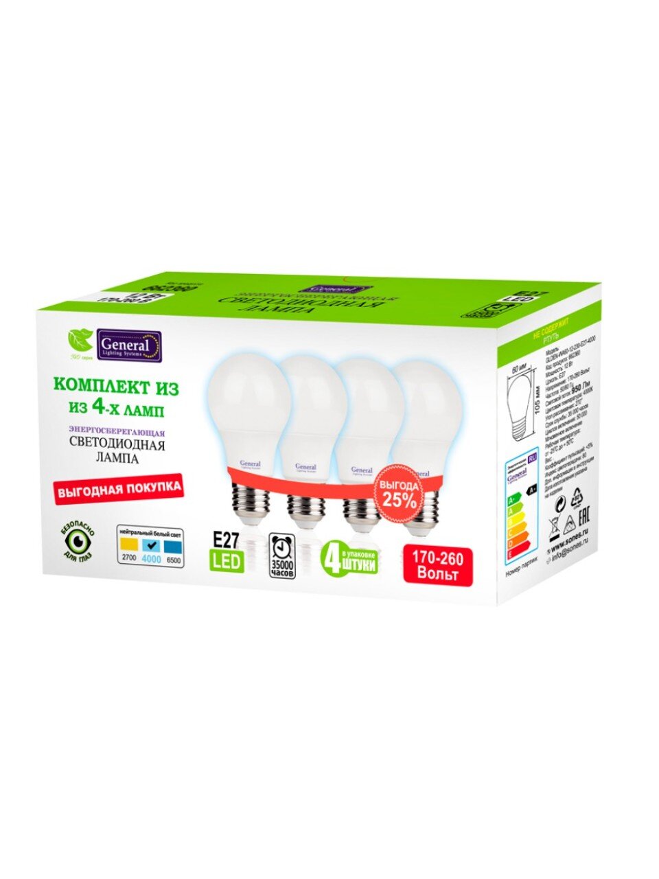 Вы можете приобрести «Лампа светодиодная E27, 12 Вт, 230 В, груша, 4000 К, нейтральный белый свет, 4 шт, General Lighting Systems, GLDEN-CF, CF, 662360» и другие товары в нашем интернет-магазине в Липецке по низким ценам и с бесплатным самовывозом.