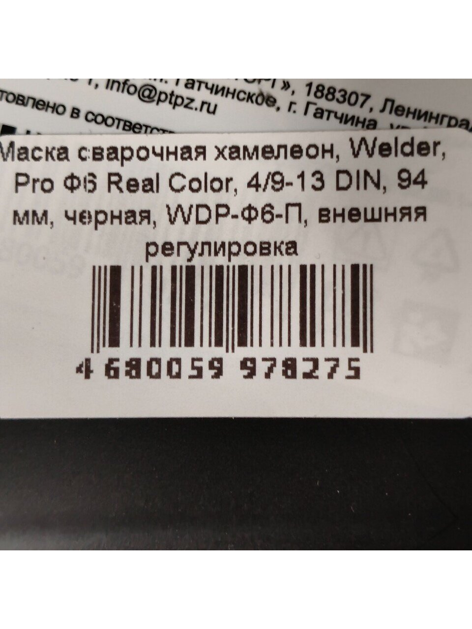 Вы можете приобрести «Маска сварочная хамелеон, Welder, Pro Ф6 Real Color, 4/9-13 DIN, 94 мм, черная, WDP-Ф6-П, внешняя регулировка» и другие товары в нашем интернет-магазине в Клинцах по низким ценам и с бесплатным самовывозом.
