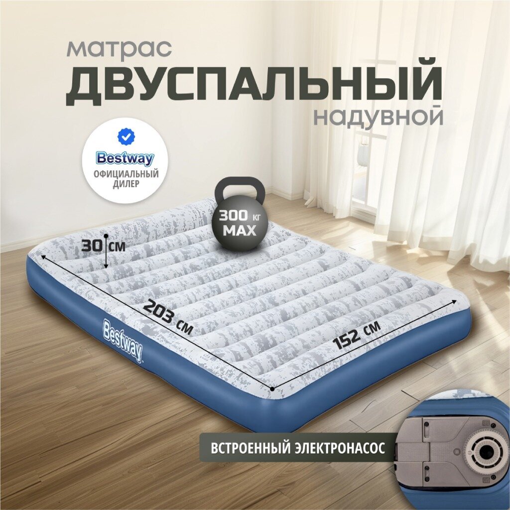 Вы можете приобрести «Матрас надувной Bestway, 203х152х30 см, 67836BW, насос встроенный, электрический, флокированный, с сумкой, 300 кг» и другие товары в нашем интернет-магазине в Санкт-Петербургe по низким ценам и с бесплатным самовывозом.