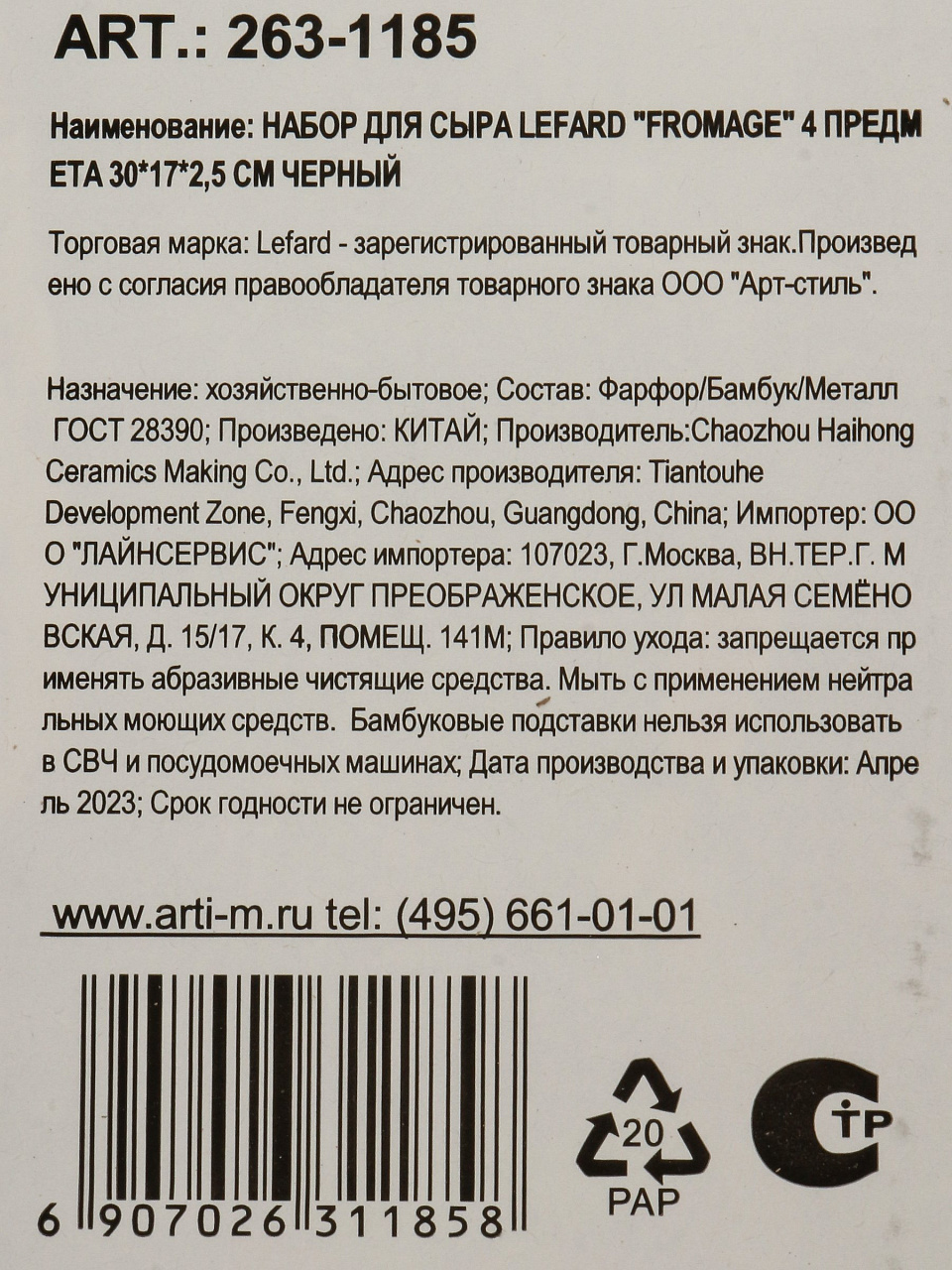 Какой размер у набора для сыра Lefard и сколько предметов входит в комплект?