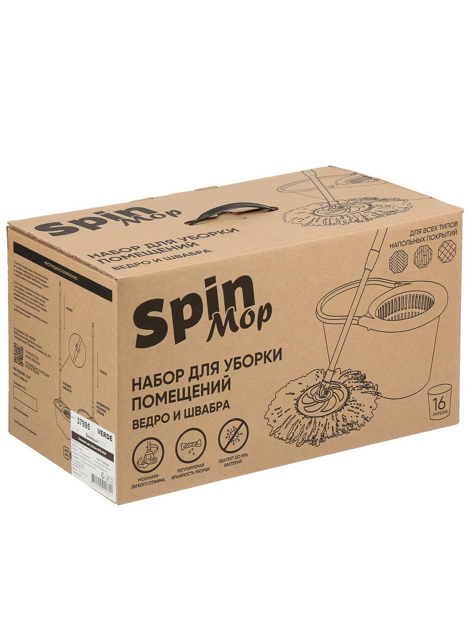 Набор для уборки Verde Spin Mop 37995: ведро с отжимом и швабра МОП для быстрой, гигиеничной уборки квартиры и дачи. Легко мыть полы без усилий и разводов.
