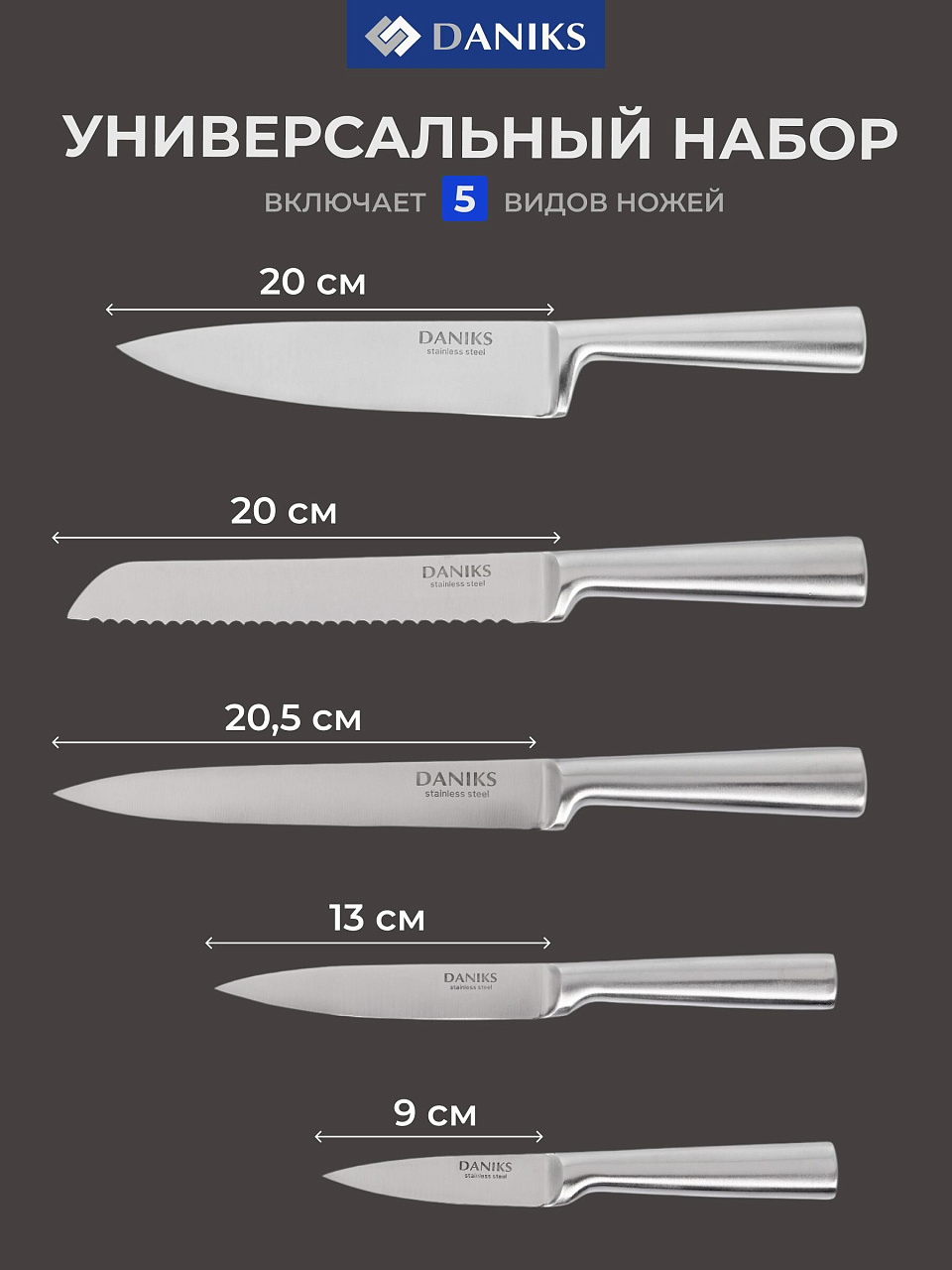 Покупая набор ножей Daniks Lovina, клиент получает не просто функциональный аксессуар для кухни, а инструмент, который ускорит и упростит приготовление любимых блюд, добавит уюта и стиля в дом, а также подчеркнет заботу о качестве и безопасности. Такой набор станет отличным решением для тех, кто ценит удобство, эстетику и долговечность кухонных принадлежностей. Откройте новые возможности для кулинарного творчества вместе с Daniks Lovina!
