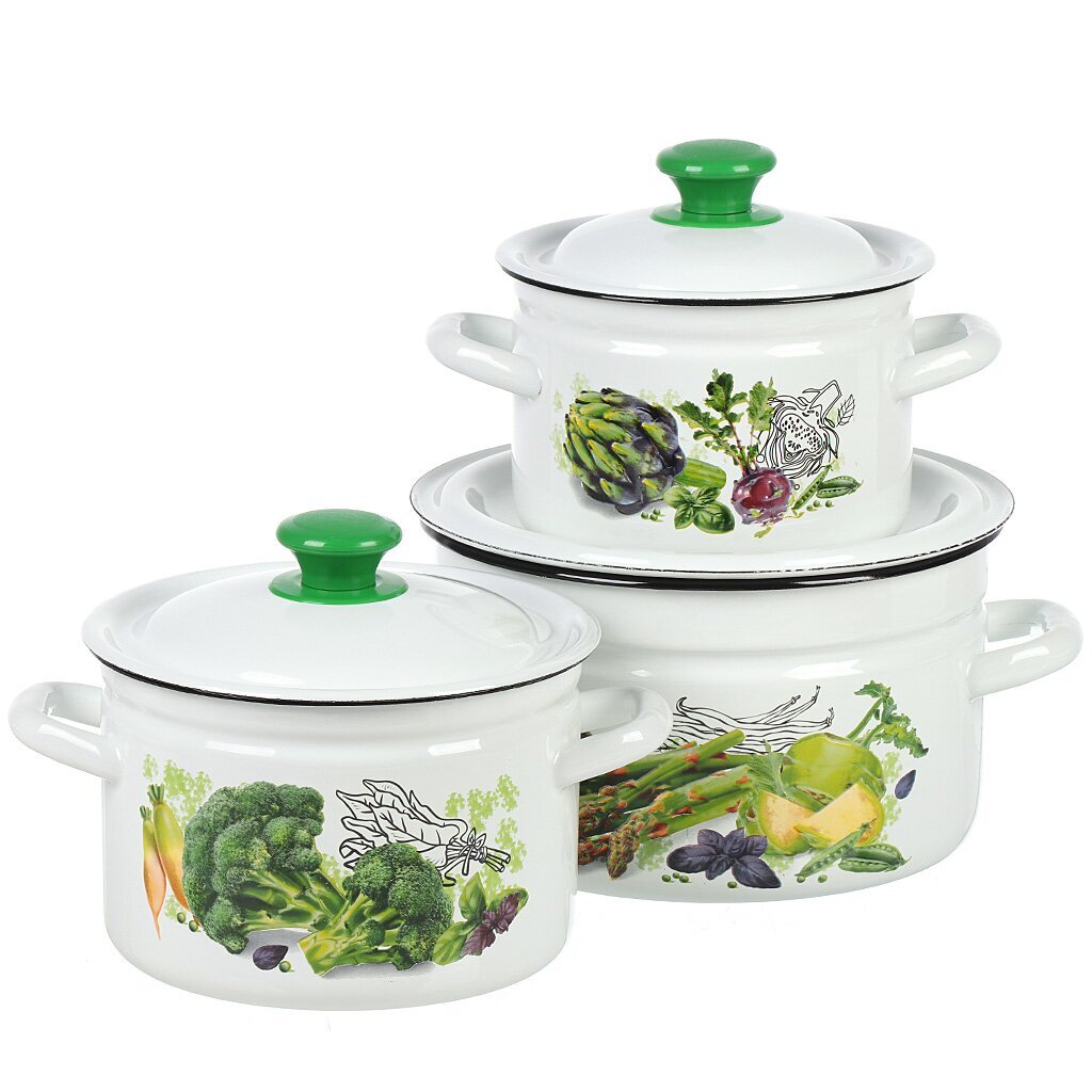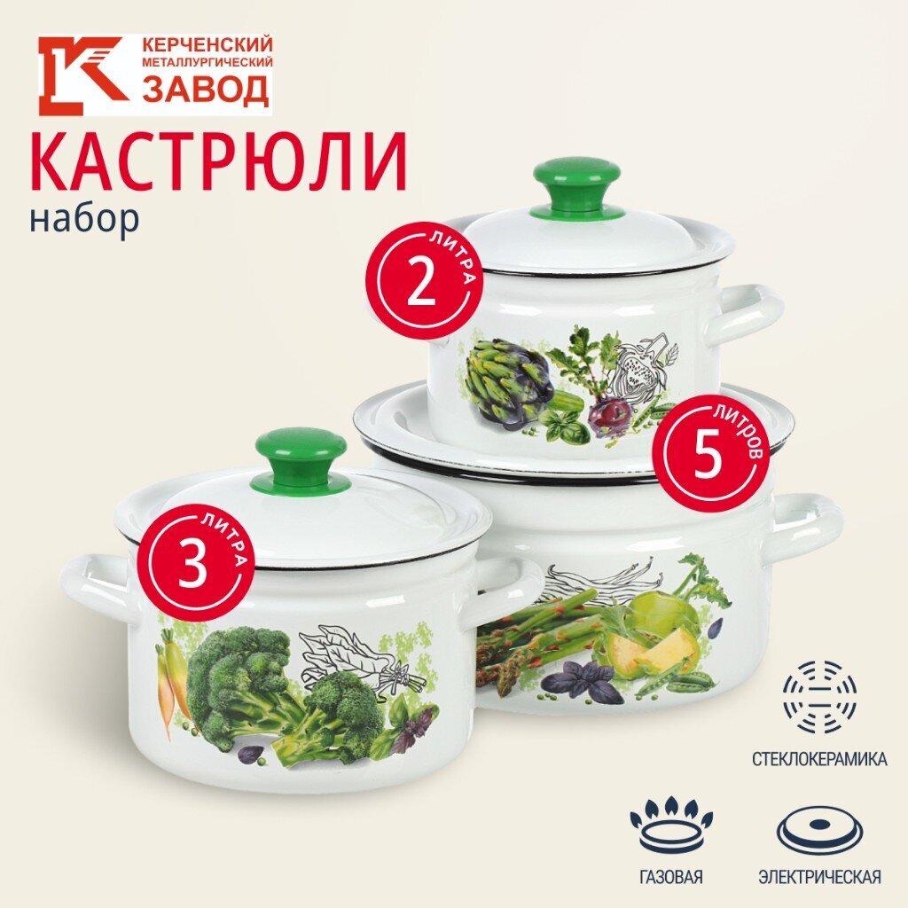 Вы можете приобрести «Набор посуды эмалированная сталь, 3 предмета, кастрюли 2, 3, 5 л., Керченский металлургический завод, Зеленые овощи-1, белый» и другие товары в нашем интернет-магазине в Белгороде по низким ценам и с бесплатным самовывозом.