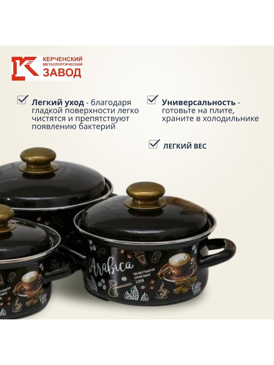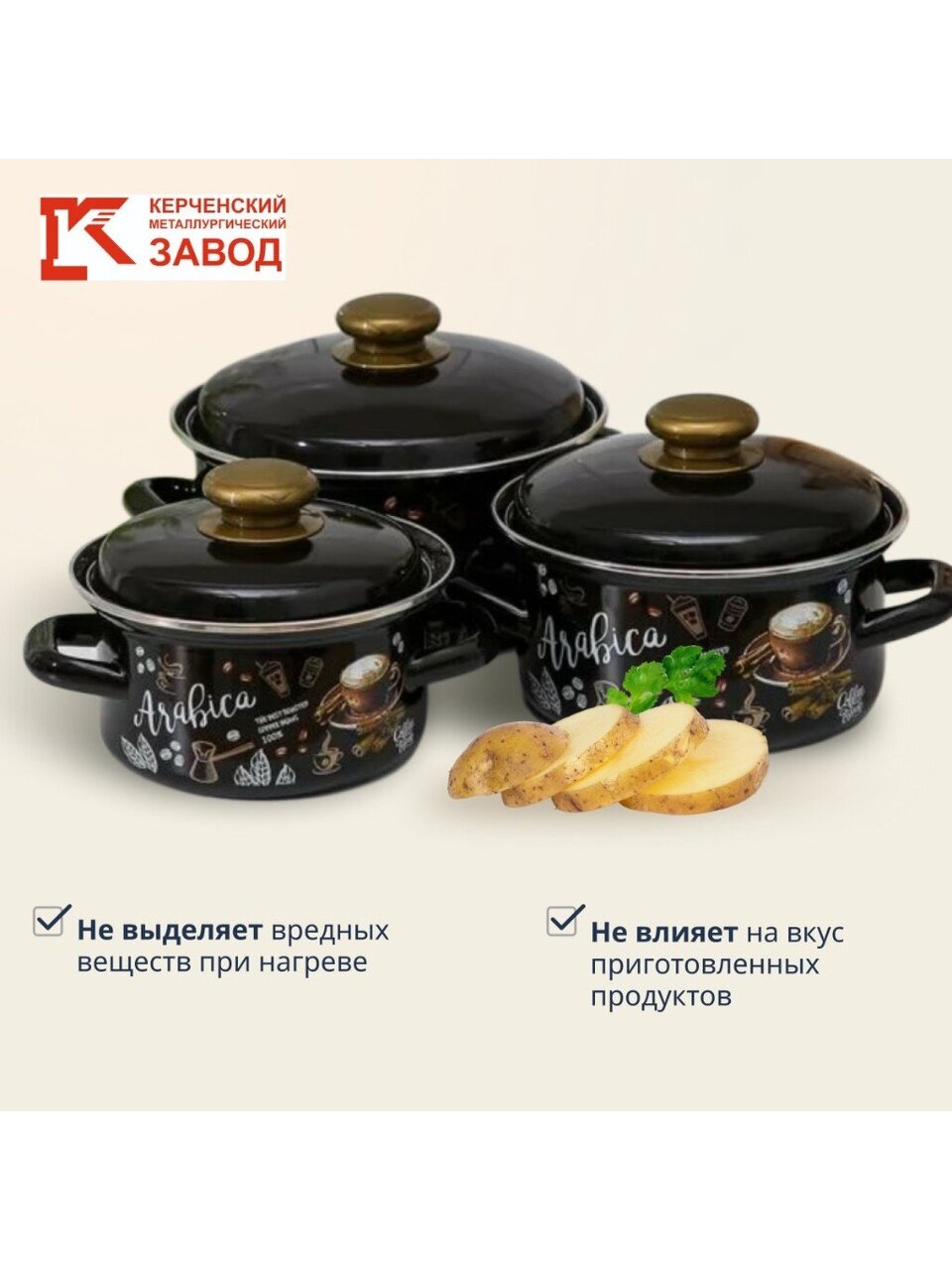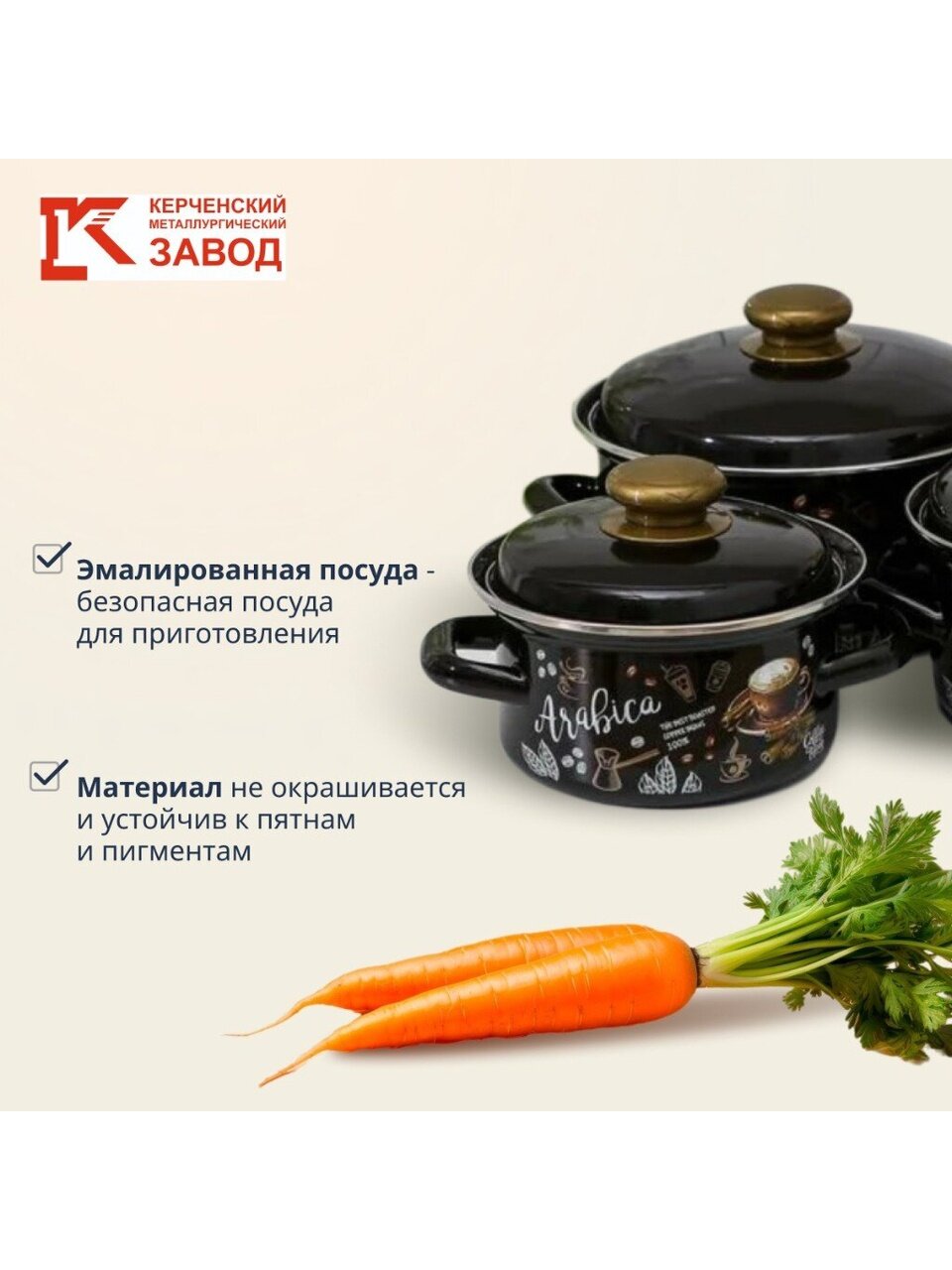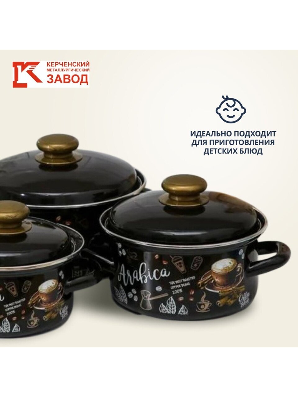 Эмалированный набор кастрюль 6 предметов Керченский металлургический завод «Арабика-1» — универсальное решение для индукционных плит, дома и дачи. Бюджетно, практично, надёжно.