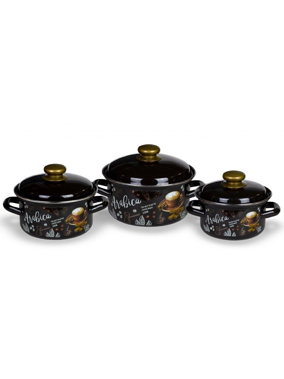 Вы можете приобрести «Набор посуды эмалированная сталь, 6 предметов, кастрюли 1,1.5,2.3 л, индукция, Керченский металлургический завод, Арабика-1, коричневый» и другие товары в нашем интернет-магазине в Брянске по низким ценам и с бесплатным самовывозом.