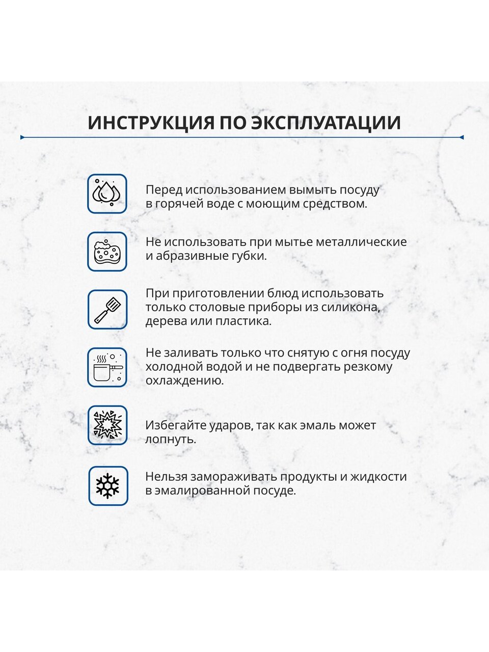 - Уникальный дизайн и долговечная эмаль: посуда устойчива к царапинам, не впитывает запахи, легко моется