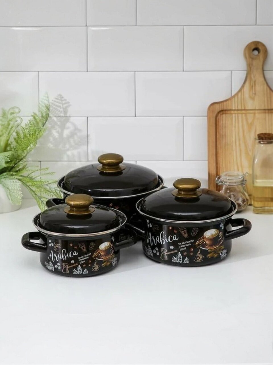 Выбирайте набор кастрюль «Арабика-1» — выгодно купить недорого посуду для дачи или дома с гарантией надёжности от российского производителя. Оформите заказ сейчас и оцените качество уже на этой неделе!
