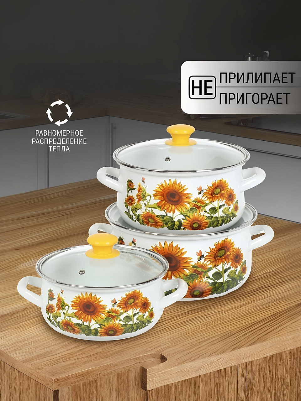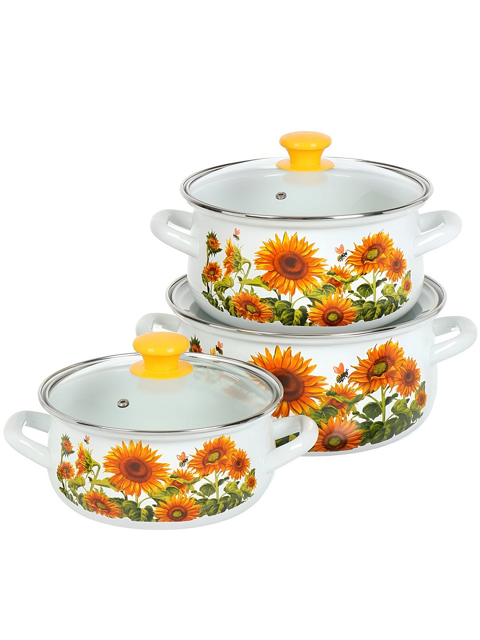 Вы можете приобрести «Набор посуды эмалированная сталь, 3 предмета, кастрюли 2,3,4 л, Керченский металлургический завод, Подсолнечный-1-ЭКСТРА» и другие товары в нашем интернет-магазине в Россоши по низким ценам и с бесплатным самовывозом.