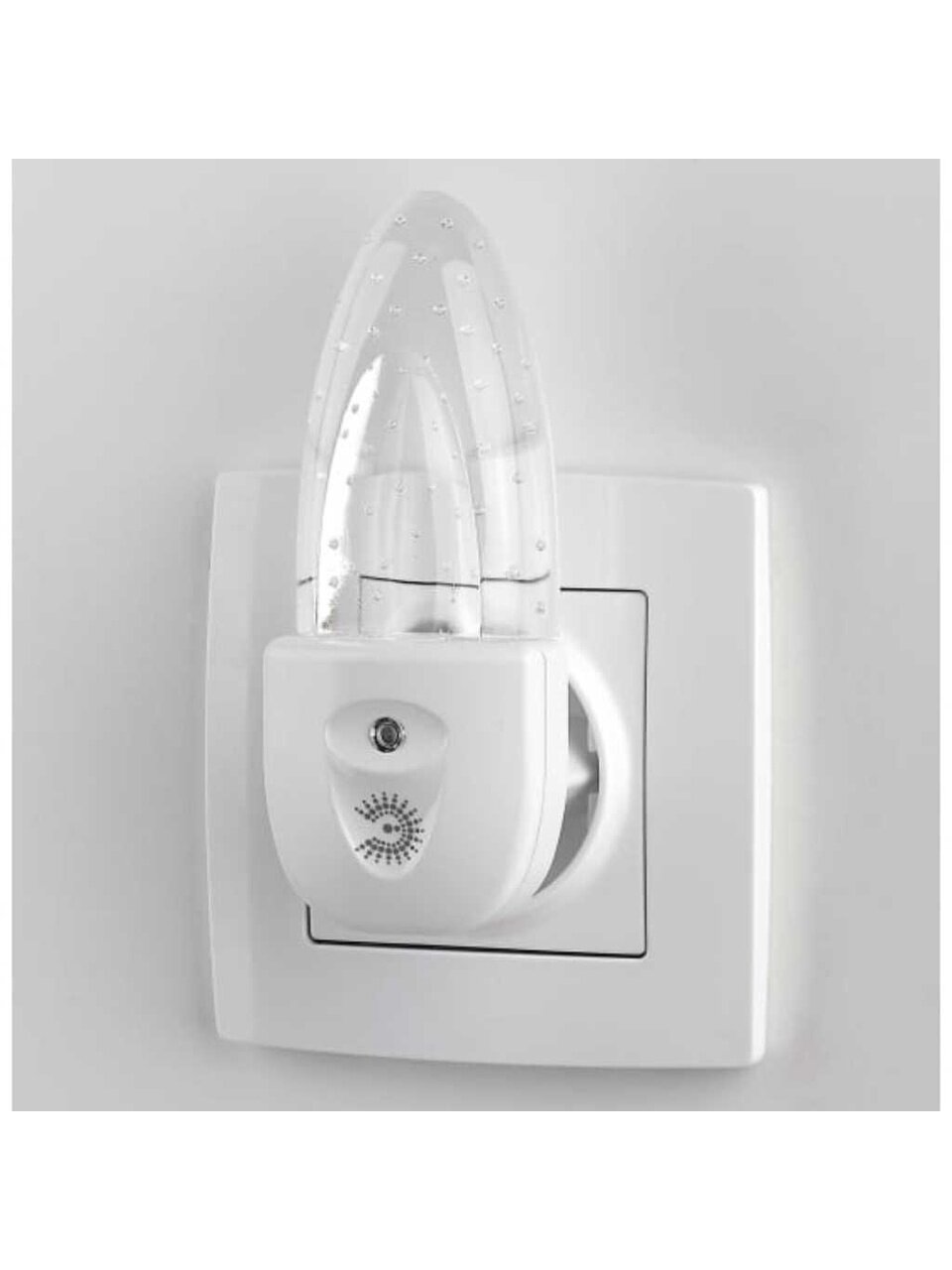 Ночник ЭРА NN-619-LS-W "Пузырьки" со светодиодами (LED) в качестве источников света и встроенным датчиком освещенности. Включается автоматически, если вокруг темно, и так же сам гаснет с рассветом.