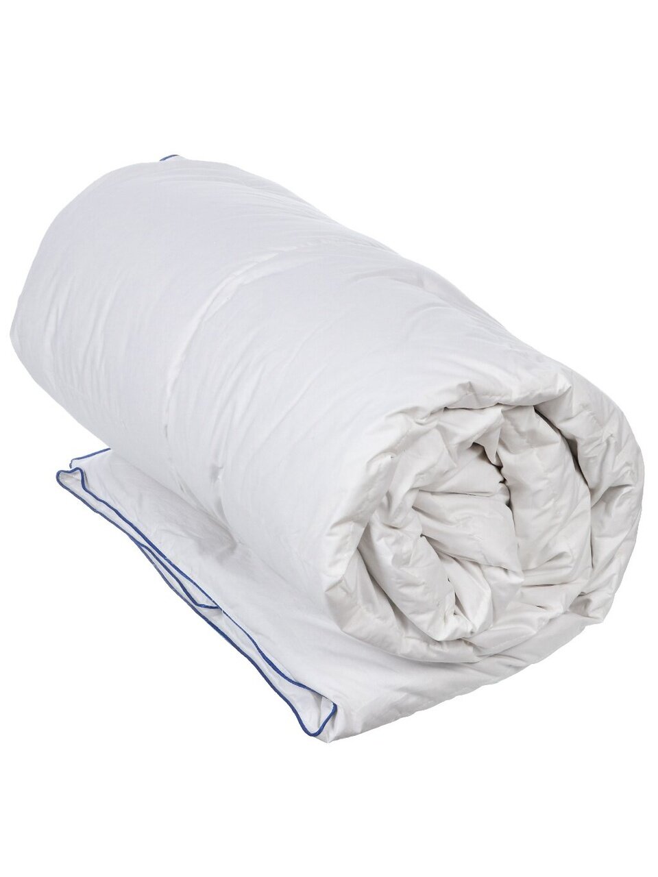 Главное отличие — натуральный наполнитель: гусиный пух обеспечивает лучшую терморегуляцию, долговечность и отсутствие статического электричества. Вес и плотность (140 г/м²) оптимальны для использования круглый год.