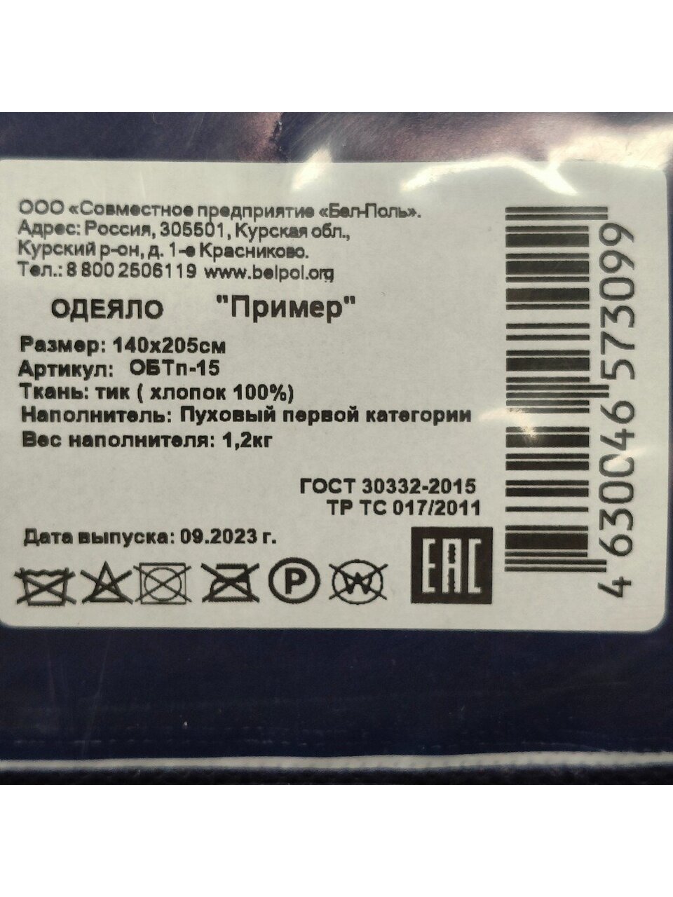 Вы можете приобрести «Одеяло 1.5-спальное, 140х205 см, Пример, гусиный пух, 140 г/м2, всесезонное, чехол 100% хлопок, тик, кант, Бел-Поль» и другие товары в нашем интернет-магазине в Казани по низким ценам и с бесплатным самовывозом.