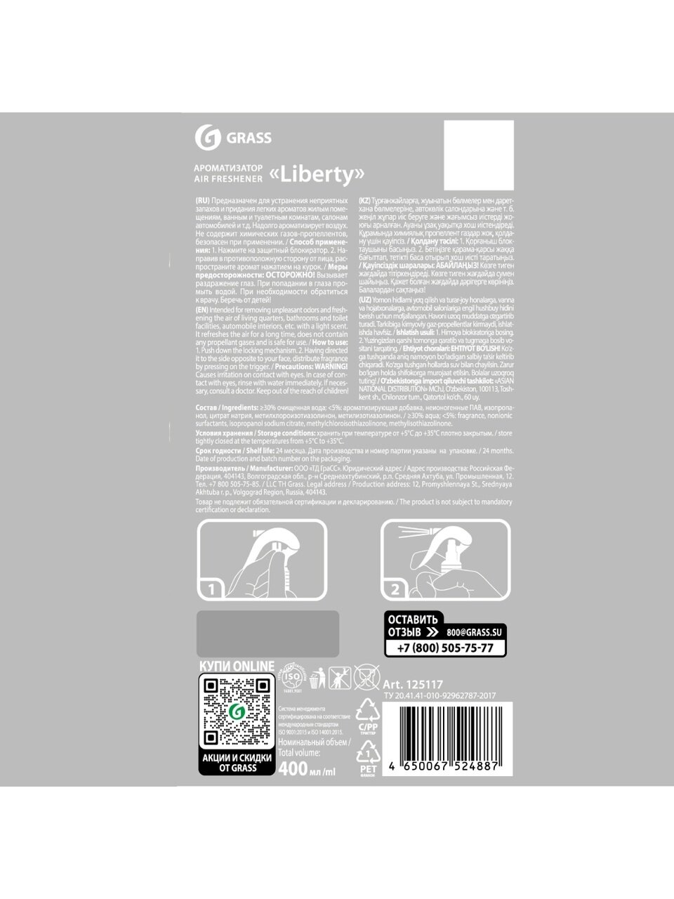 Освежитель воздуха Grass Liberty Цветущая магнолия 400 мл — быстрое устранение неприятных запахов дома и на даче, стойкий аромат, выгодная цена.