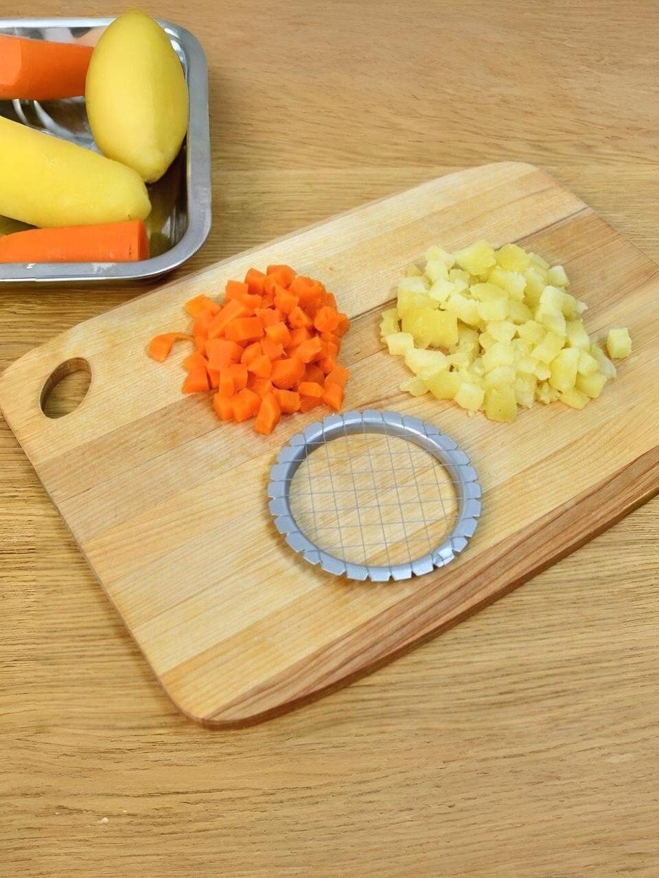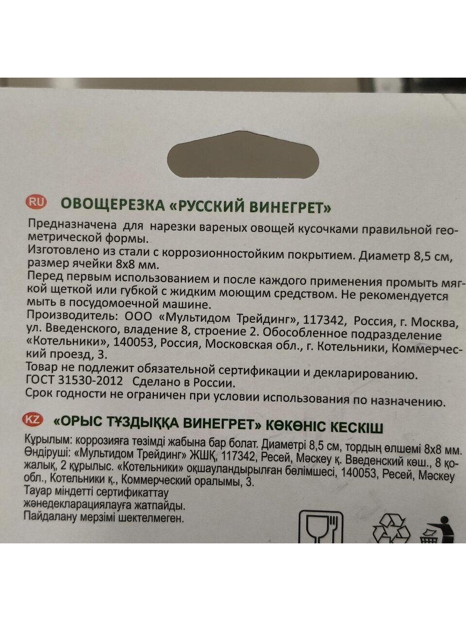 Овощерезка “Русский винегрет” - это незаменимый помощник на вашей кухне, предназначенный для нарезки вареных овощей или фруктов кусочками правильной геометрической формы. Используется для приготовления салатов, декора блюд, приготовления закусок.