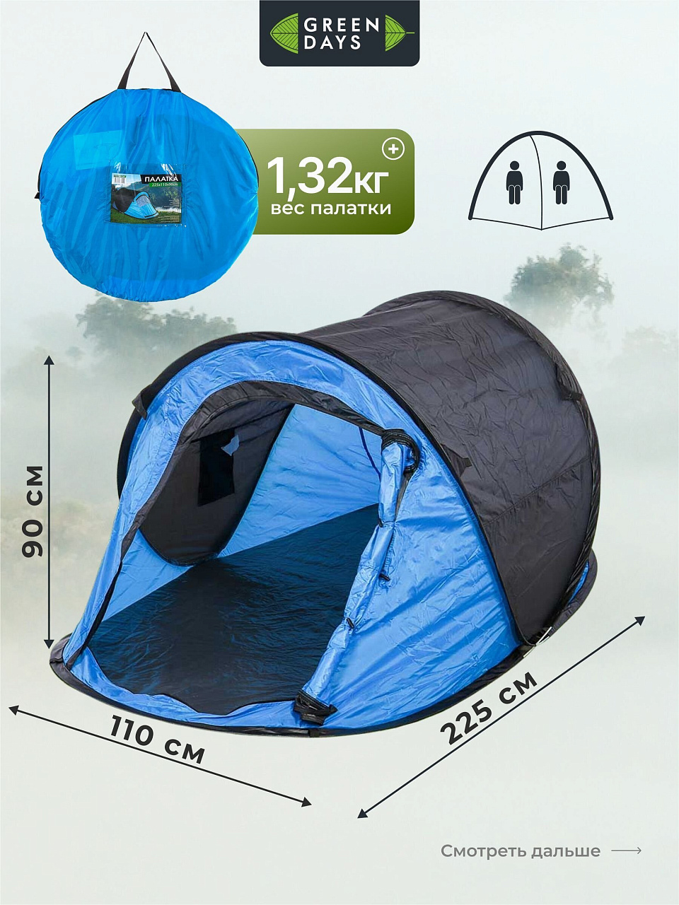 Двухместная однослойная палатка-автомат великолепно подойдет для комфортного использования во время путешествий или на пикнике и добавит удовольствия к вашему отдыху на природе. Высококачественный продукт по доступной цене, что делает Green Days привлекательным выбором для всех.