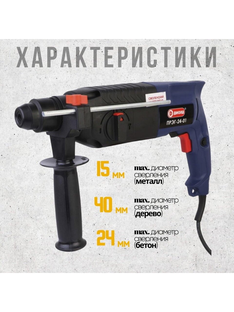 Электрический ручной перфоратор ДИОЛД ПРЭГ-24-01 относится к изделиям бытового назначения и предназначен для работы в ударно-вращательном, вращательном и ударном режимах.