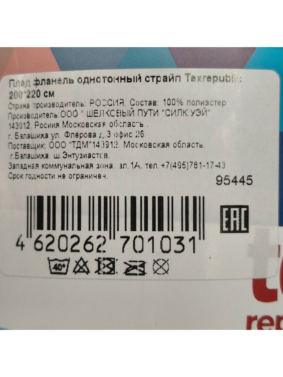 Плед евро Texrepublic Страйп 200х220 см — это мягкий фланелевый плед из 100% полиэстера, который отлично сохраняет тепло, быстро сохнет и не требует сложного ухода. Благодаря современному составу материал устойчив к выцветанию, не вызывает раздражения и подходит для круглогодичного использования. Если вы ищете, какой плед лучше выбрать для спальни или гостиной, обратите внимание на сочетание большого размера и приятной текстуры — этот вариант особенно ценят за долговечность и простоту в уходе.