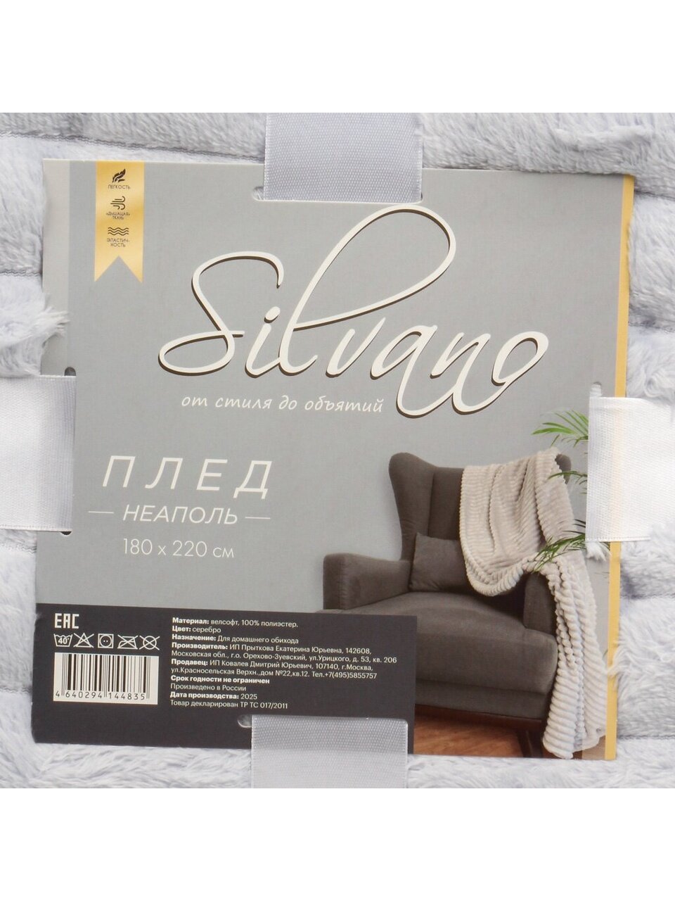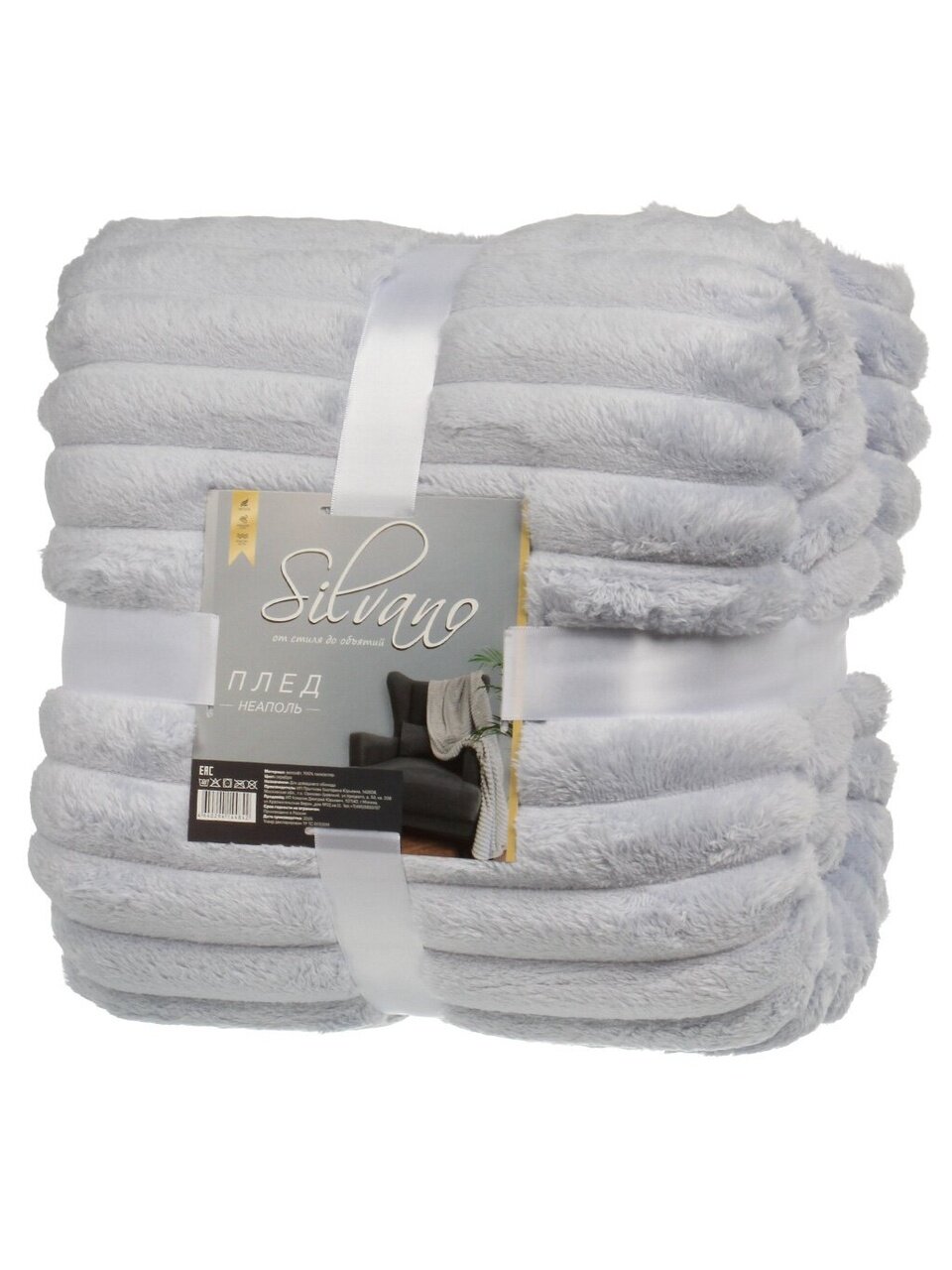 Плед 2-спальный Silvano 180х220 см: уютный велсофт, серебристый цвет, мягкий и тёплый — для дома, дачи или в подарок по выгодной цене.