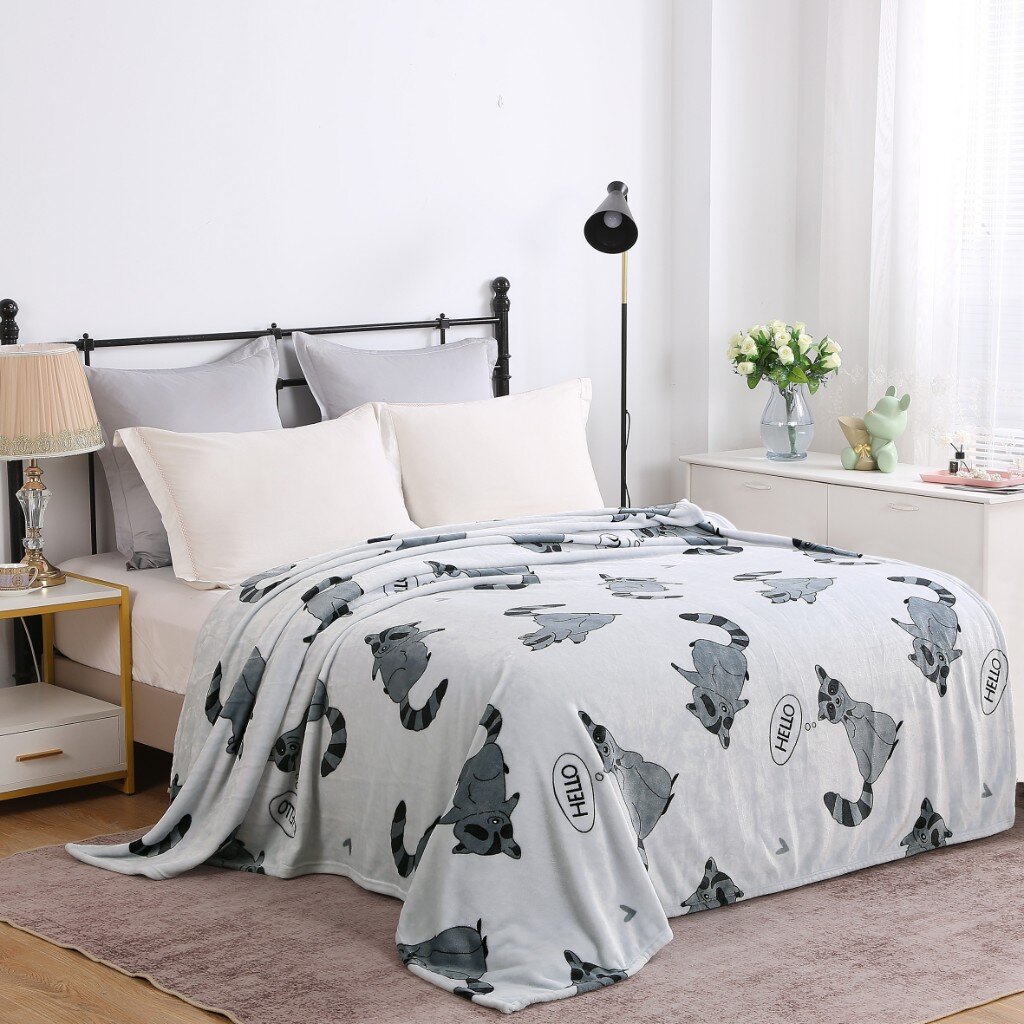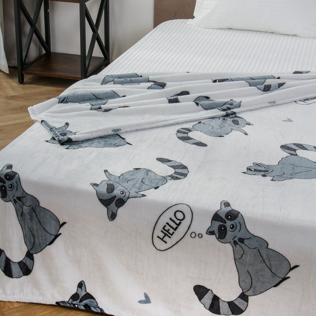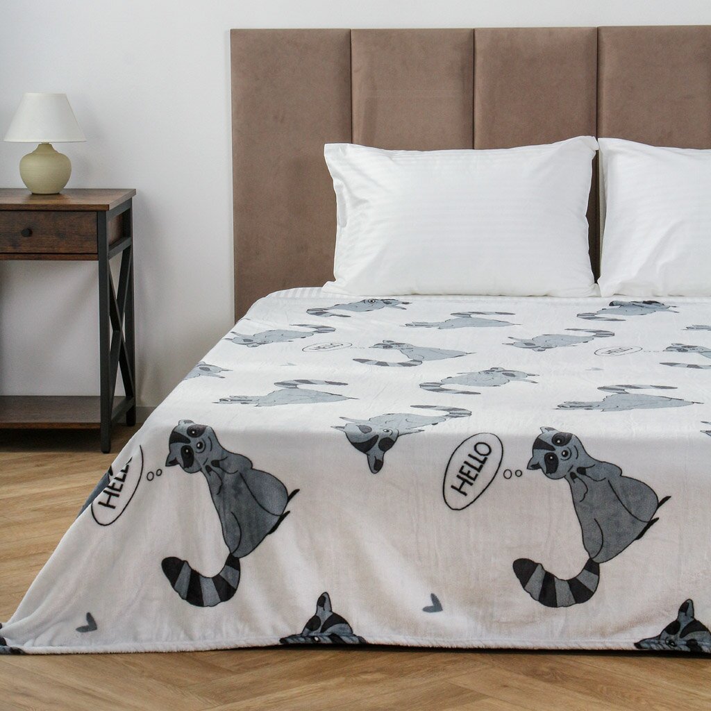 Плед 1.5-спальный Silvano «Енот» 150х200 см — уютное решение для дома и дачи: мягкий велсофт, стильный серый дизайн, недорогая цена, быстрая доставка.
