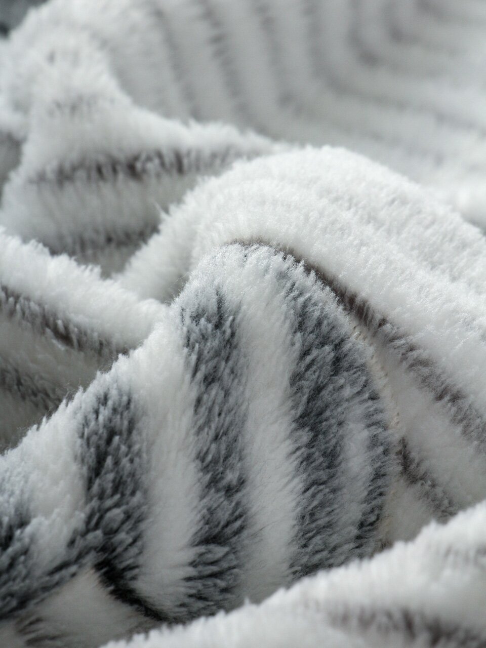Плед из велсофт жаккарда (100% полиэстер) можно стирать в машинке при 30–40°C. Материал быстро сохнет и не требует глажки, не скатывается и не теряет форму.
