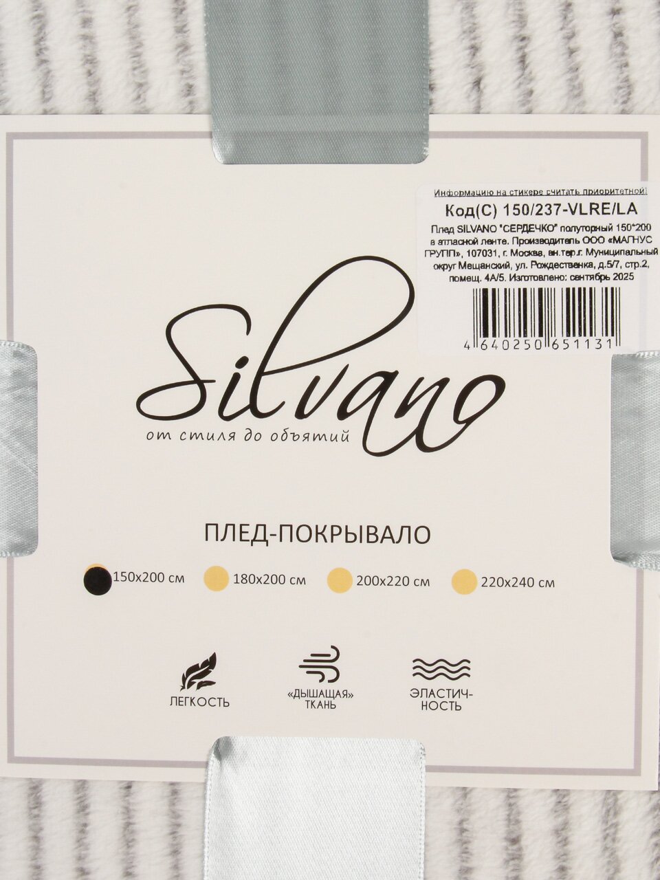 Закажите плед Silvano с доставкой — получите стильный и уютный аксессуар, который прослужит долго и подарит тепло в любое время года.