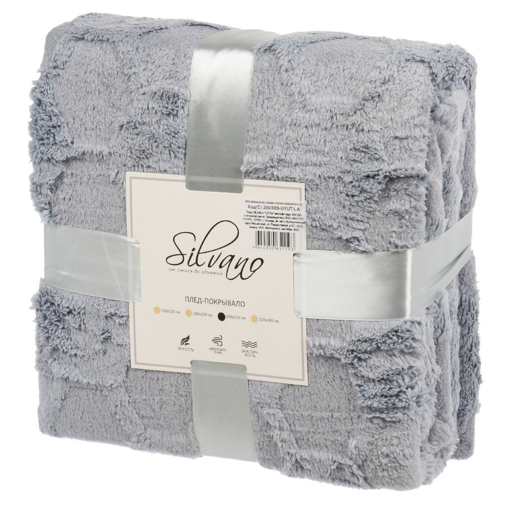 Плед Silvano размером 200х220 см идеально подходит для кровати евро-стандарта, полностью закрывает спальное место и может использоваться как покрывало.