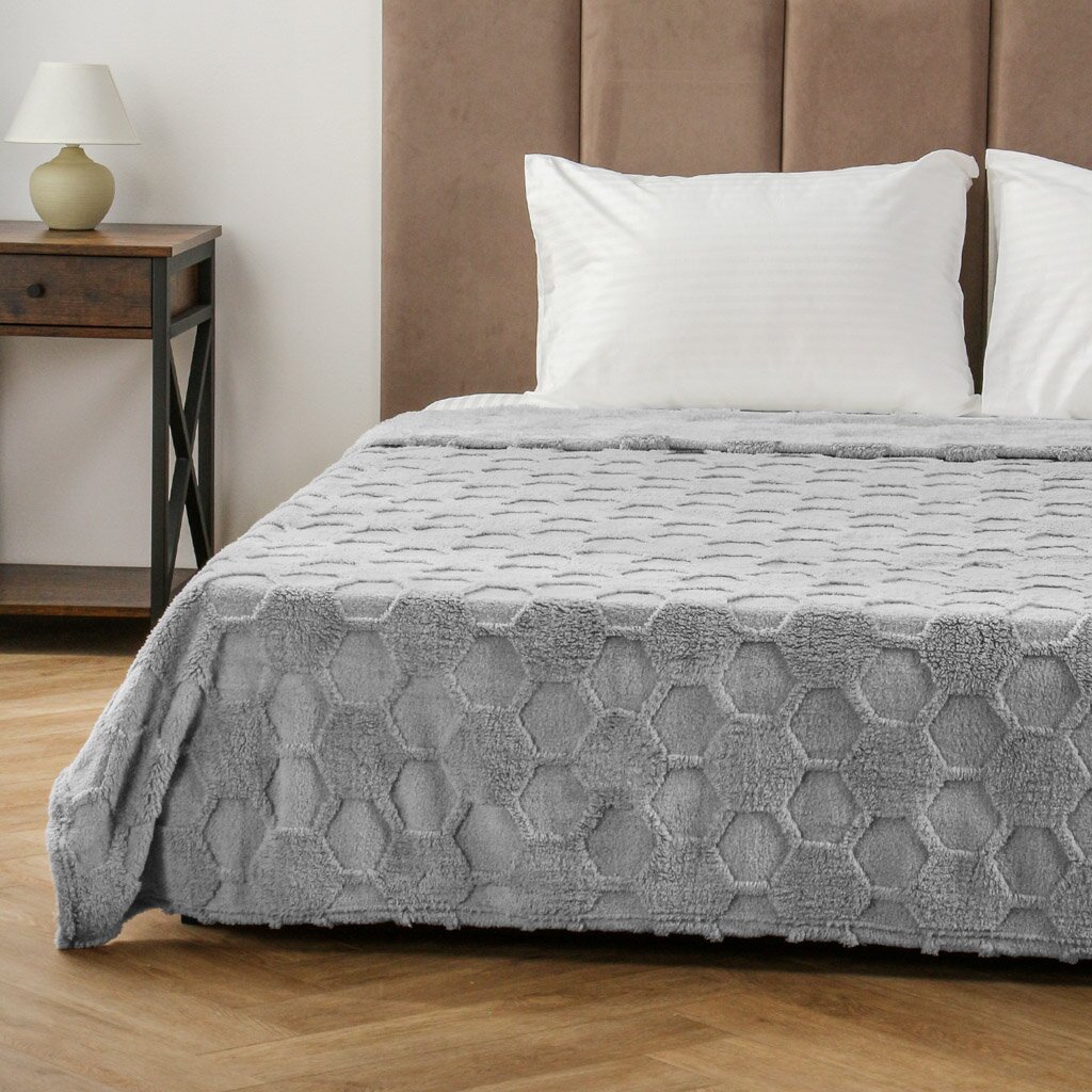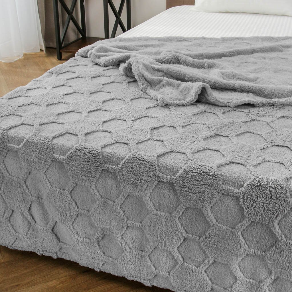 Плед евро 200х220 см велсофт жаккард Silvano «Соты» — уют и тепло для дома, дачи или подарка: мягкий, гипоаллергенный, стильный голубой цвет.