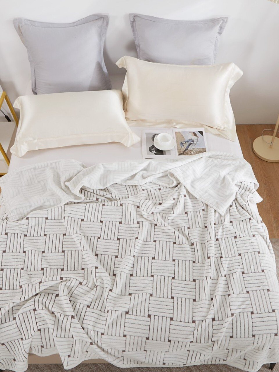 В отличие от аналогов с натуральным составом, плед Silvano не требует сложного ухода: его можно стирать при 30-40 градусах, он быстро сохнет и сохраняет форму. Для тех, кто ищет, чем отличается велсофт жаккард от других тканей, — это более выраженная фактура, лёгкость и устойчивость к деформации. Плед не стеганый, не двусторонний, что облегчает уход и делает его универсальным для разных сценариев — будь то уютный вечер на даче или стильное покрывало в квартире.