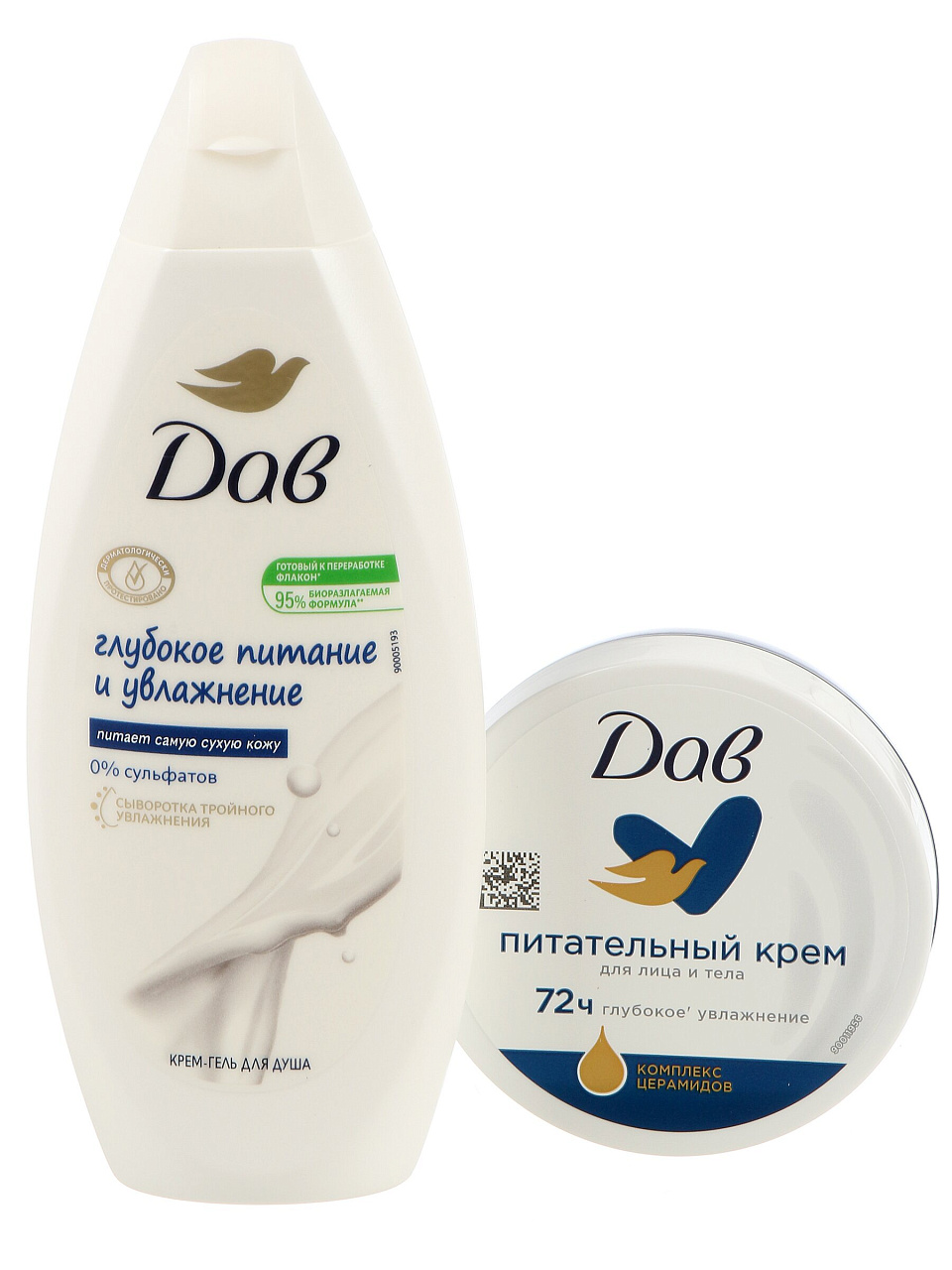 В составе набора — продукты, которые подходят для всех типов кожи, включая чувствительную. Часто спрашивают: «Подходит ли для ежедневного использования?» — да, формула создана для регулярного применения, не вызывает раздражения. По сравнению с аналогичными наборами, Дав выделяется мягким воздействием и универсальностью: крем можно использовать и для лица, и для тела, что экономит место в косметичке. Как использовать набор? Просто нанести гель на влажную кожу, а после душа — крем на лицо или тело для максимального увлажнения.