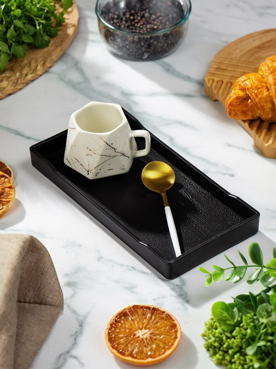 Поднос - это функциональный и стильный аксессуар для сервировки стола и стилизации домашнего пространства. Поднос можно использовать в качестве подставки под горячее. Он не боится высоких температур.
