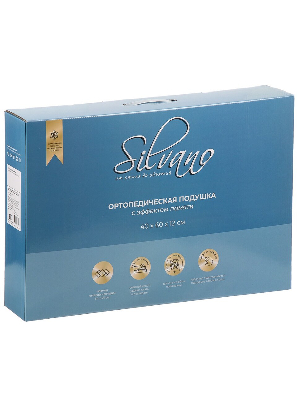 Ортопедическая подушка Silvano 40x60 см с эффектом памяти и охлаждением: комфортный сон без перегрева, подходит для чувствительной кожи и профилактики боли в шее.