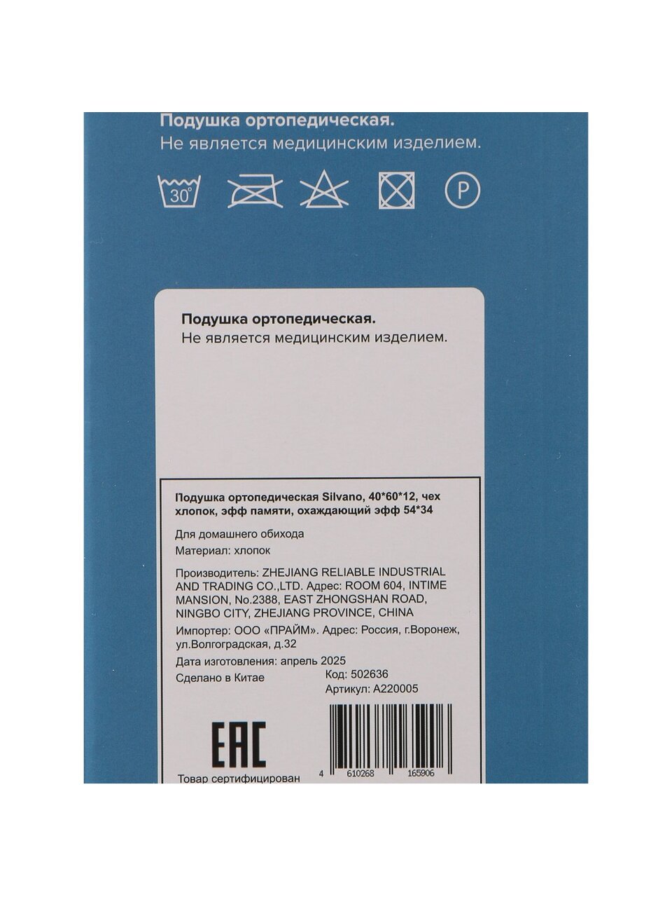 Вы можете приобрести «Подушка ортопедическая, 40х60х12, чехол хлопок, с эффектом памяти, охлаждающий эффект 54х34см, Silvano, A220005» и другие товары в нашем интернет-магазине в Курске по низким ценам и с бесплатным самовывозом.