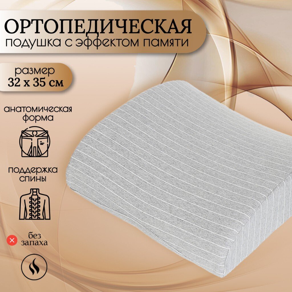 Ортопедическая подушка 32x35 см с эффектом памяти: комфортный сон без боли в шее, гипоаллергенный хлопковый чехол, подходит для дома и дачи.