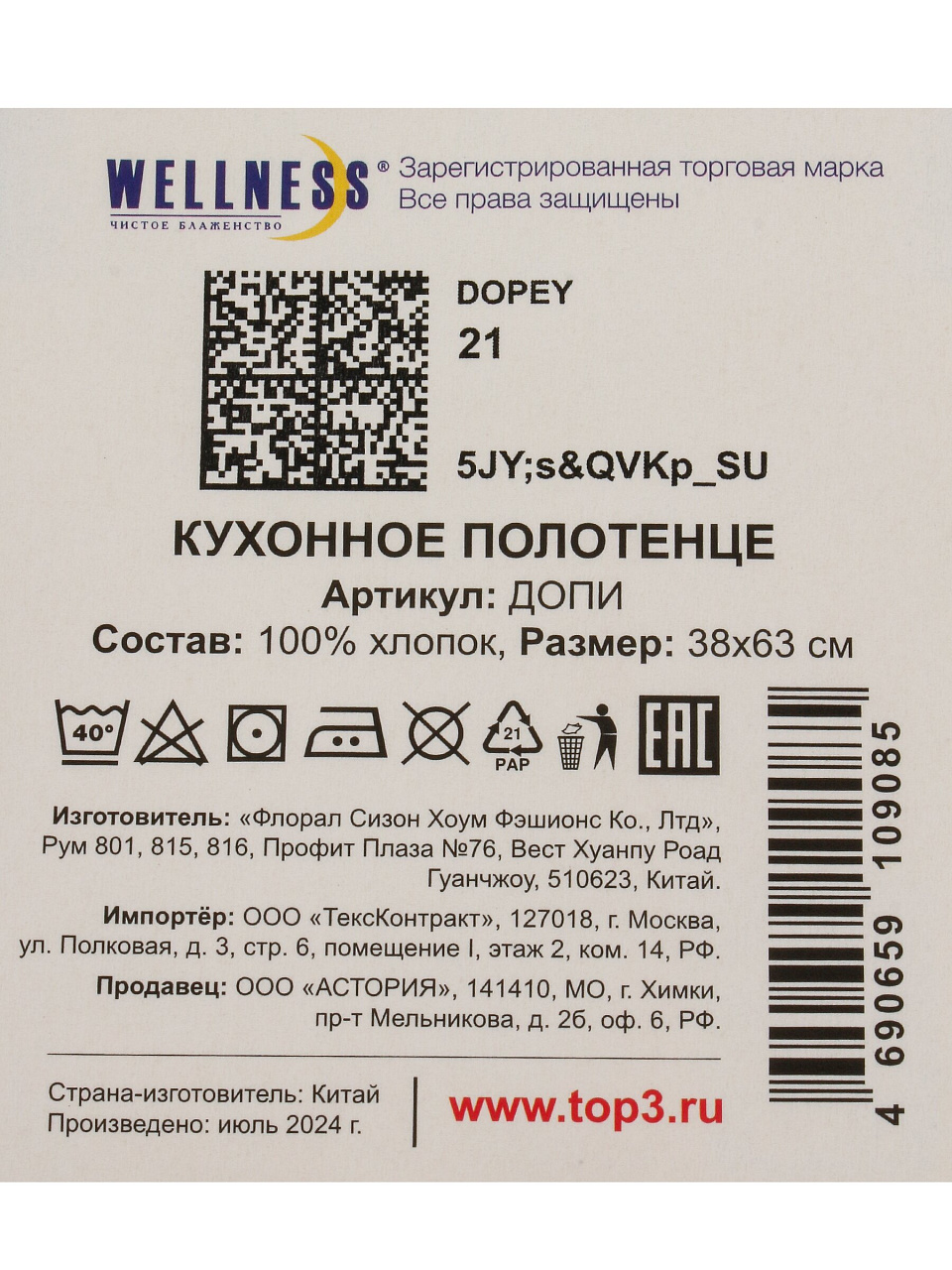 Вы можете приобрести «Полотенце кухонное махровое, 38х63 см, 250 г/м2, 100% хлопок, Wellness, Допи, Китай» и другие товары в нашем интернет-магазине в Твери по низким ценам и с бесплатным самовывозом.