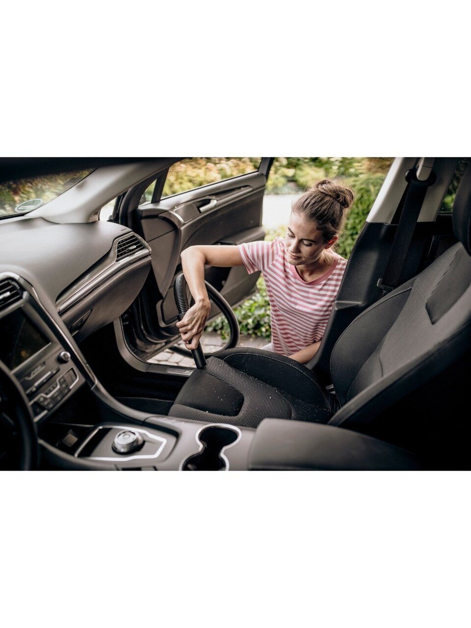При своей компактной конструкции аппарат WD 2 Plus V-12/4/18 впечатляет высокой силой всасывания и энергоэффективностью – потребляемая мощность составляет лишь 1000 Вт. Он гарантирует превосходные результаты сбора сухого и влажного мусора как мелких, так и крупных размеров. Этот хозяйственный пылесос оснащен прочным 12-литровым пластмассовым мусоросборником, 4-метровым кабелем, всасывающим шлангом длиной 1,8 м с прямой рукояткой, насадкой для пола со вставками, поролоновым фильтром и фильтр-мешком из нетканого материала. В нем предусмотрена практичная функция выдувания, позволяющая удалять мусор из мест, недоступных для уборки пылесосом. Панель в верхней части аппарата обеспечивает надежную укладку инструментов и мелких деталей, таких как гвозди или шурупы. Насадка для пола и удлинительные трубки могут быстро и удобно закрепляться на отбойнике пылесоса. Кроме того, он впечатляет компактностью при хранении, удобством размещения принадлежностей, замками Pull & Push и ручкой эргономичной формы, обеспечивающей удобную переноску.