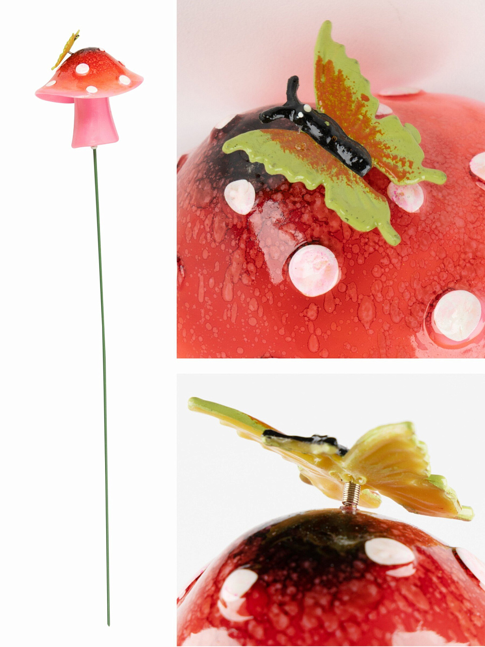 Садовый декор-штекер Грибочек 61.5 см из металла — стильный акцент для дачи и сада, который не боится влаги и легко устанавливается без инструментов.