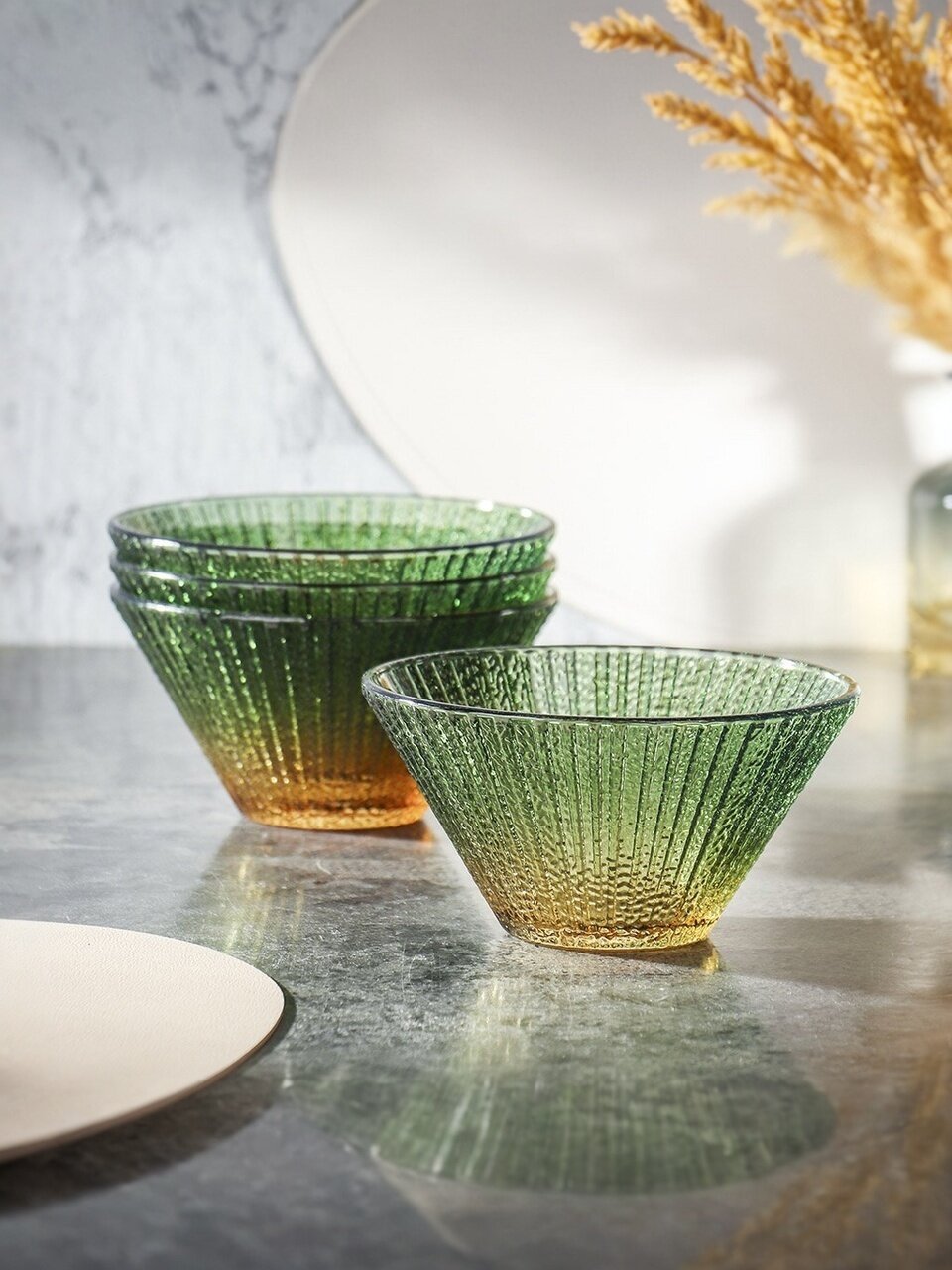 Набор салатников из цветного стекла 0.4 л (4 шт) — стильное решение для сервировки, подарка и хранения. Подарочная упаковка. Можно мыть в посудомойке.