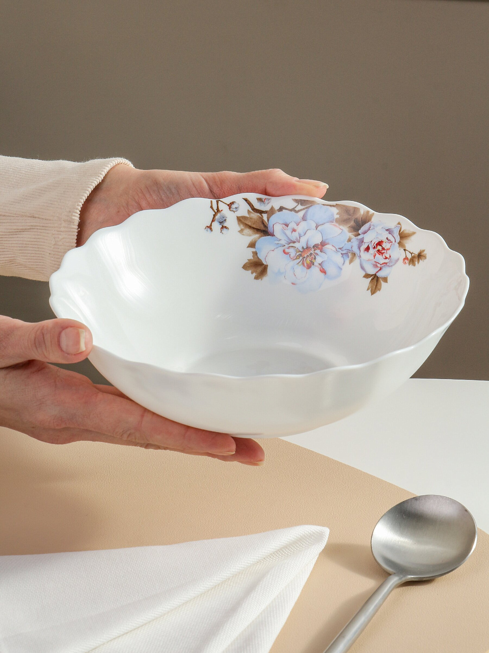 - Уникальный дизайн: белый салатник с цветочным рисунком гармонично впишется в любой интерьер и подчеркнёт атмосферу уюта.