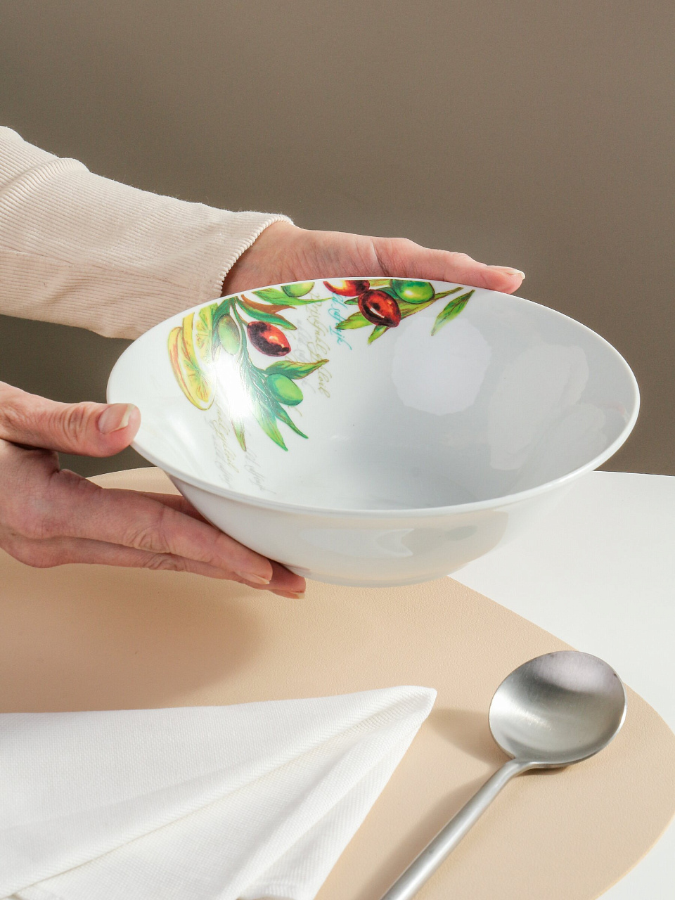 Салатник Daniks Олива — это идеальный выбор для тех, кто ищет, какой салатник купить для дачи или дома. Керамика обеспечивает равномерное охлаждение и сохранение свежести продуктов, а ручная роспись с оливковыми листьями делает каждое изделие уникальным. Благодаря объёму 0,9 литра, салатник отлично подходит для порционной подачи закусок, фруктов или салатов на 2-3 персоны.