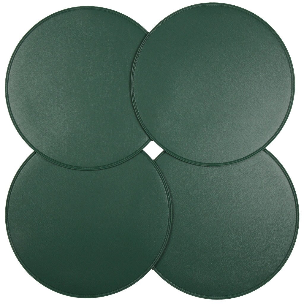 Каждая салфетка имеет диаметр 38 см, форма — круглая. В наборе 4 штуки, цвет — зелёный.