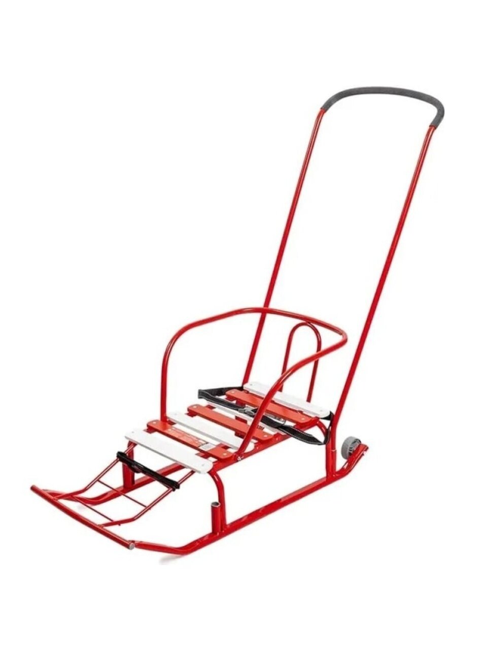 - Комплектация: спинка, переставная ручка, ремень безопасности, колеса, веревка.