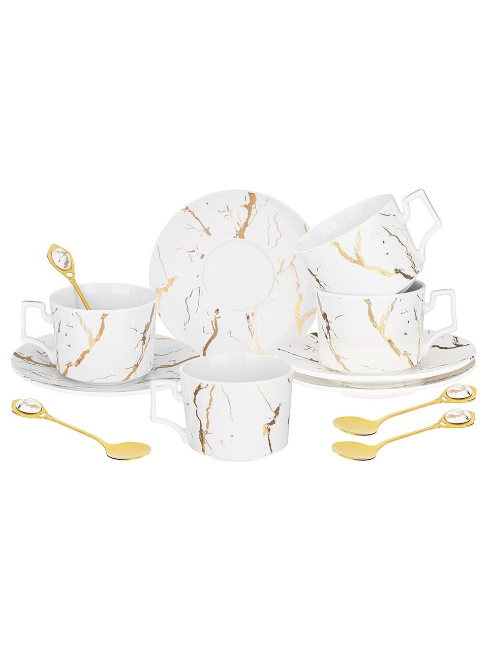 В комплекте 12 предметов, рассчитанных на 4 персоны: чашки, блюдца, ложки. Объём каждой чашки — 250 мл, материал — премиальный фарфор.