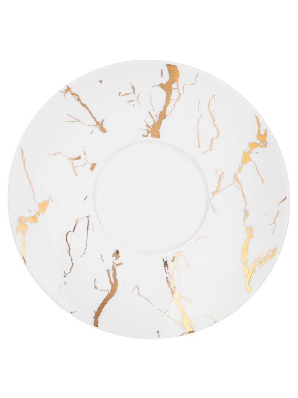 - Эксклюзивный дизайн с мраморным рисунком и ложками в комплекте — выделяется среди стандартных сервизов