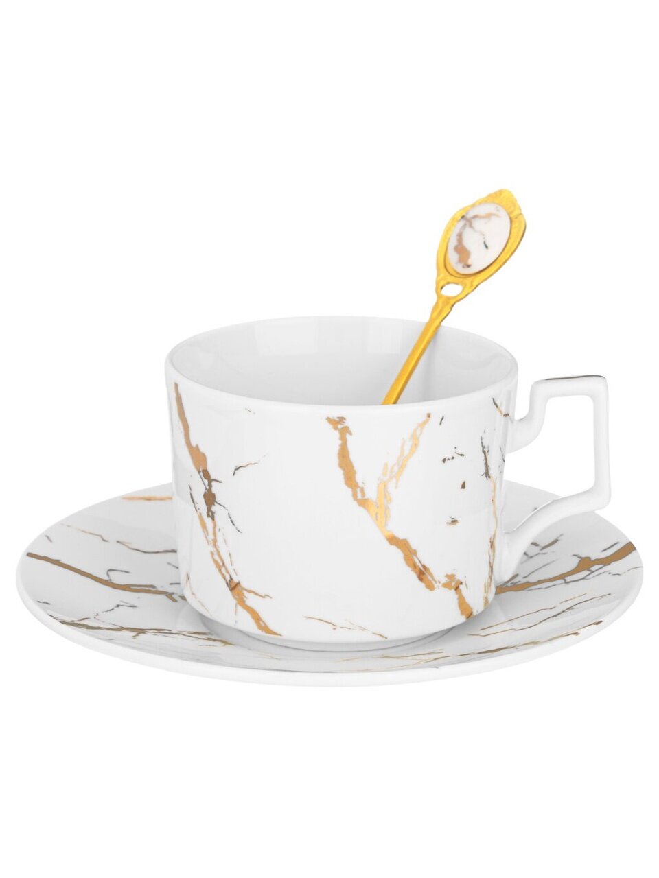 Чайный набор Lefard Fantasy из 12 предметов — это современное решение для ценителей эстетики и комфорта. Фарфоровые чашки объёмом 250 мл с изящным мраморным рисунком не только украсят стол, но и сохранят вкус напитка без посторонних запахов. В комплекте предусмотрены ложки — редкость для чайных сервизов, что удобно для сервировки и подчёркивает премиальность набора.
