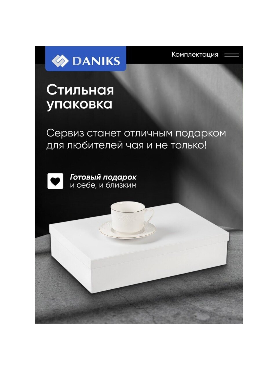 Подарочный чайный набор Daniks «Листья» на 6 персон: элегантная керамика с золотой каймой, 12 предметов, идеальный выбор для уютных встреч и стильного подарка.