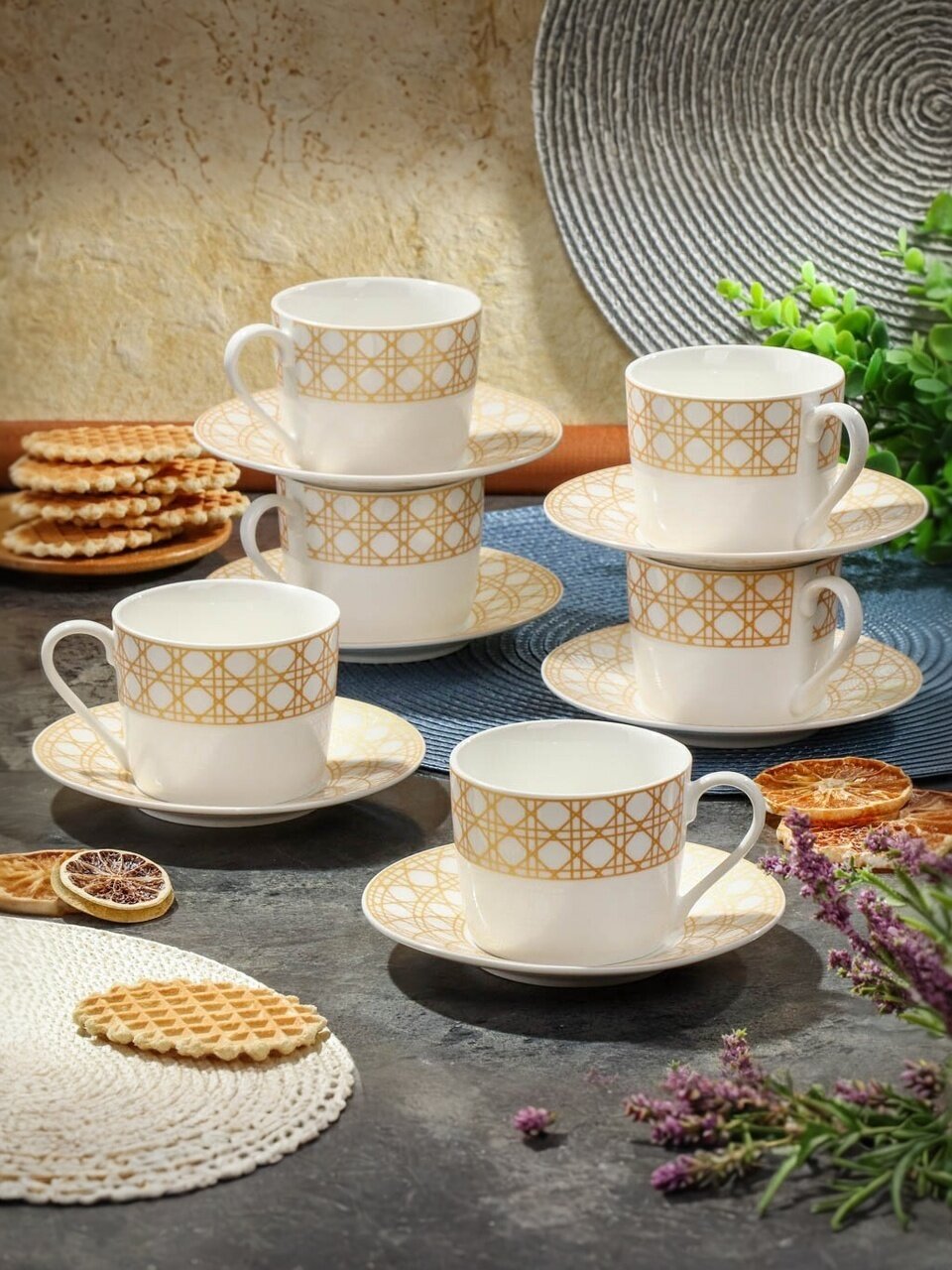 Объём каждой чашки — 220 мл. Этого достаточно для классического чаепития или подачи кофе.