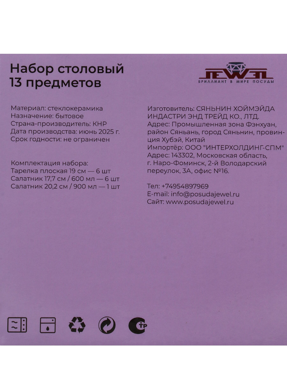 Сервиз столовый стеклокерамика, 13 предметов, на 6 персон, Jewel, Жизель, ПС00115-48
