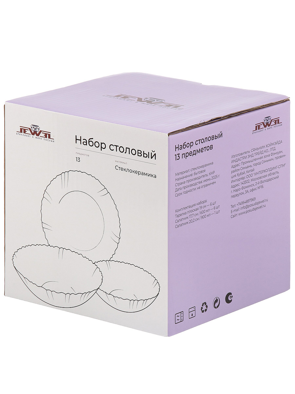 Сервиз столовый стеклокерамический Jewel на 6 персон: 13 предметов для стильной сервировки, долговечность, идеален для подарка и дома.